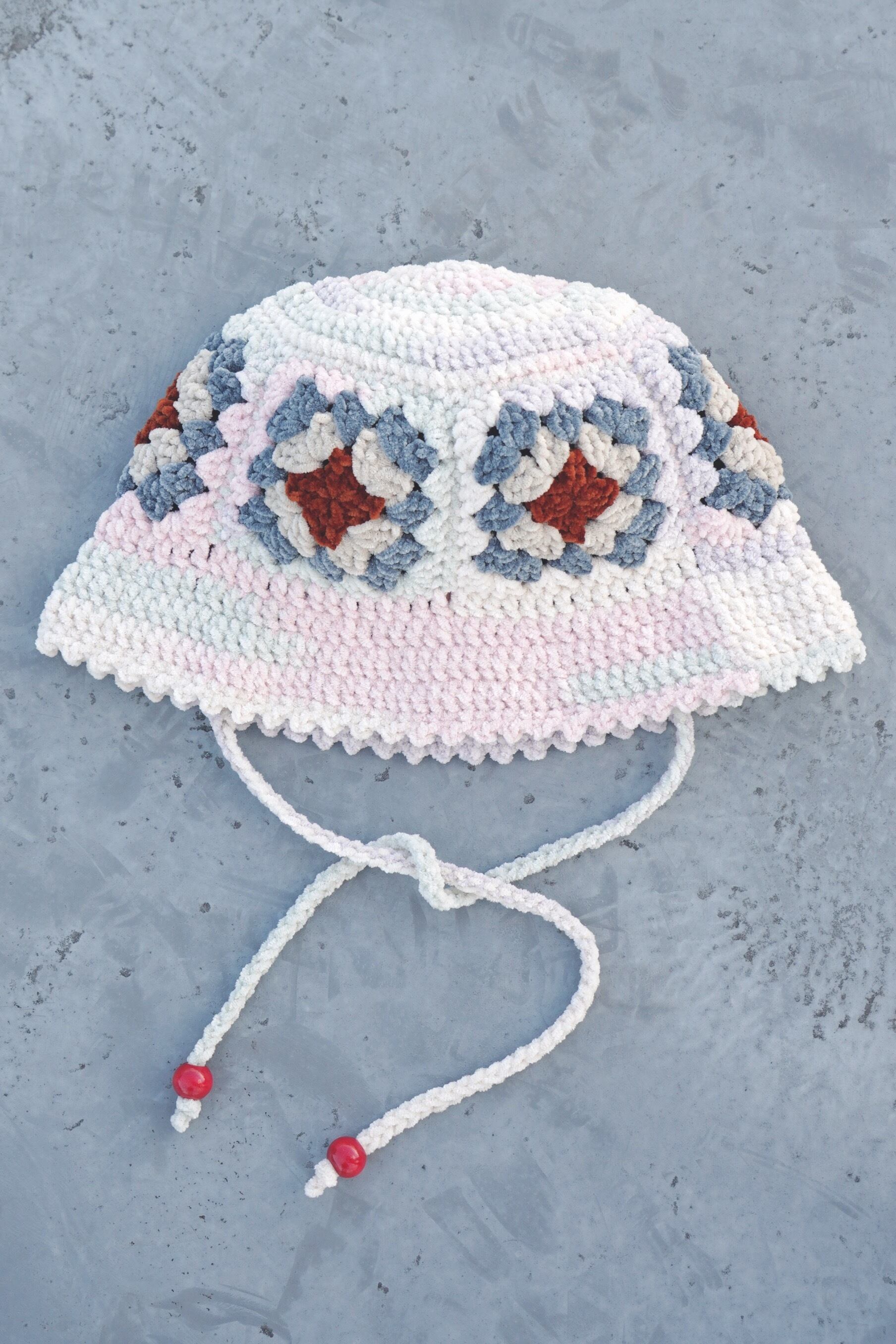 4色のグラデーションが施された、光沢感のあるモール糸をボディに使用したクロッシェです。合わせるコーディネートを選ばない、すっきりとしたシルエットに仕上げました。