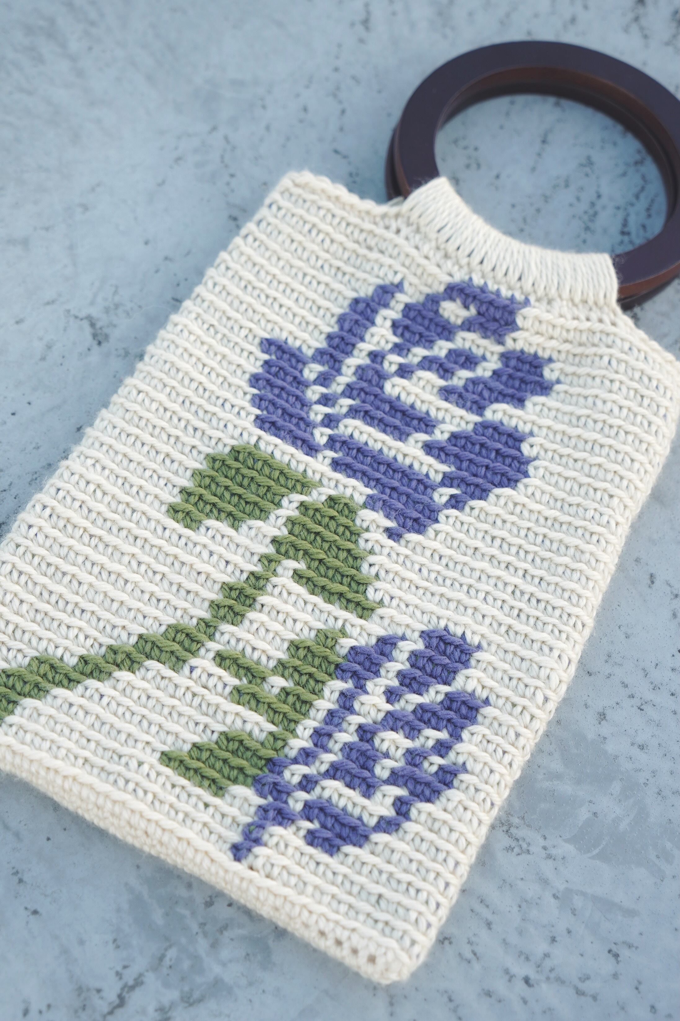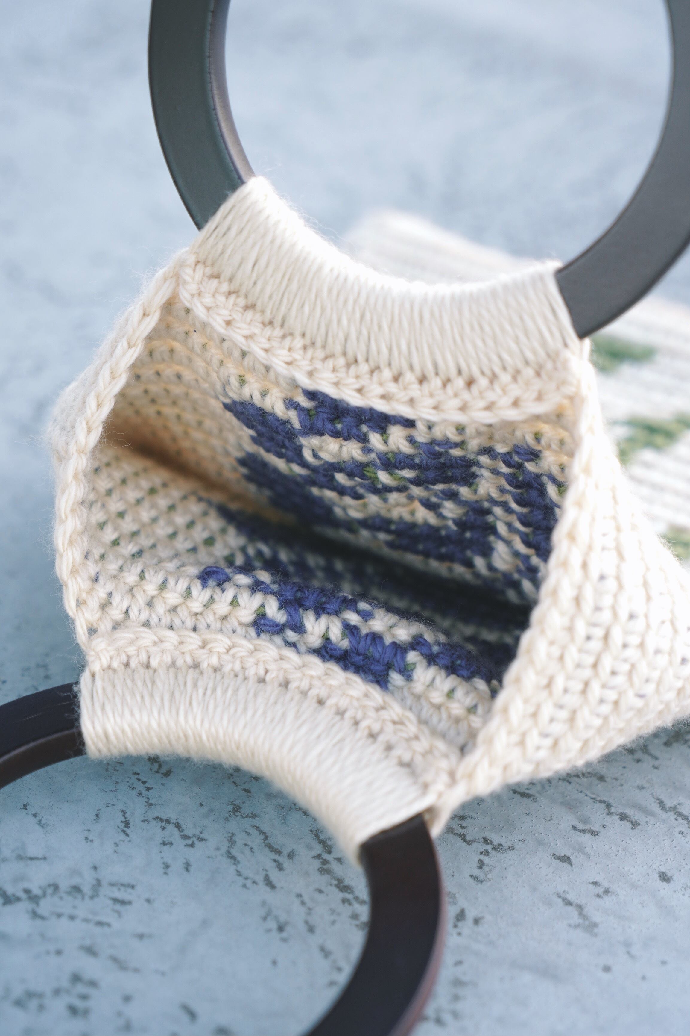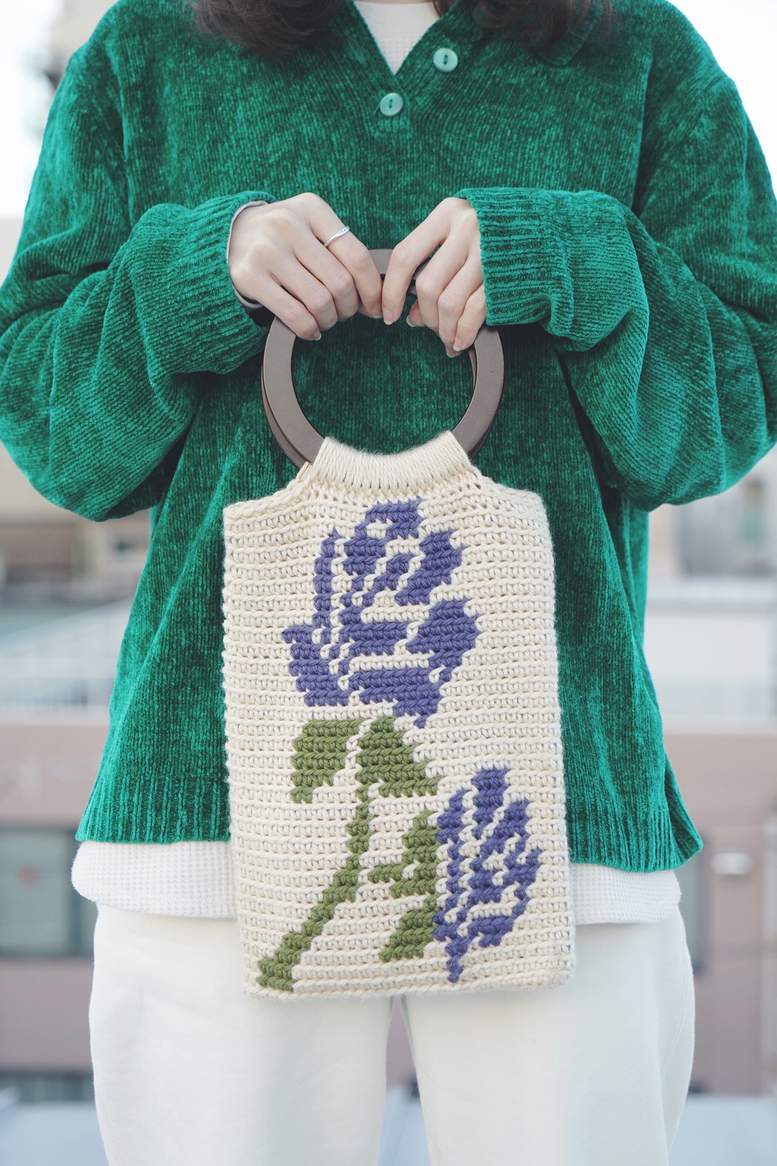 メリノウール100%の糸で編んだ、暖かみのあるニットバッグです。落ち着いた色味のウッドハンドルを合わせました。