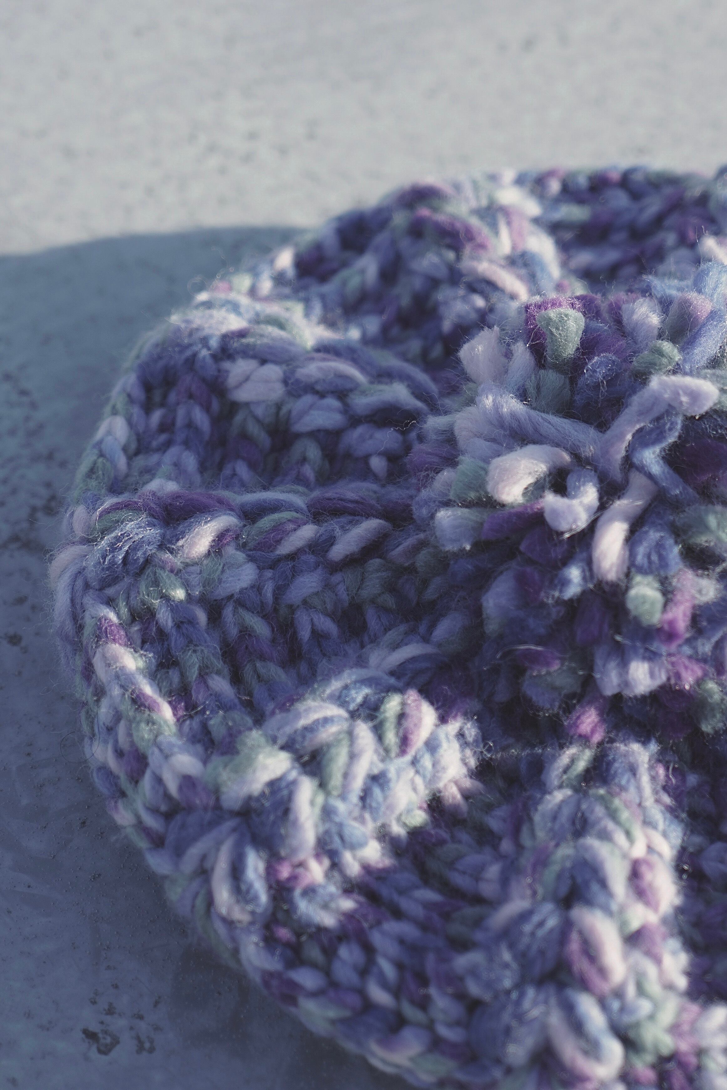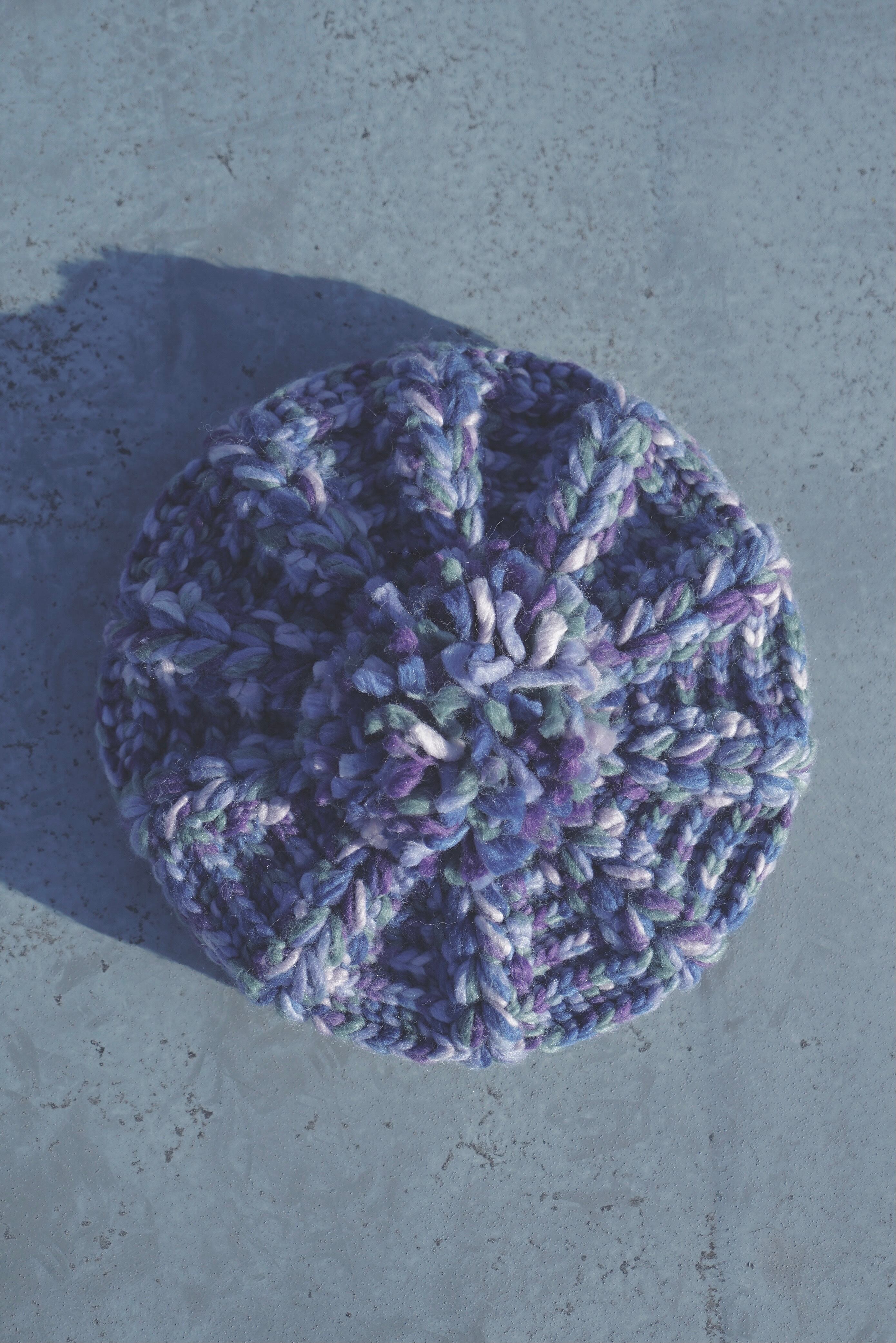 ロービング、マルチカラーのニットベレー帽。大きめなシルエットで、存在感のあるアイテムです。