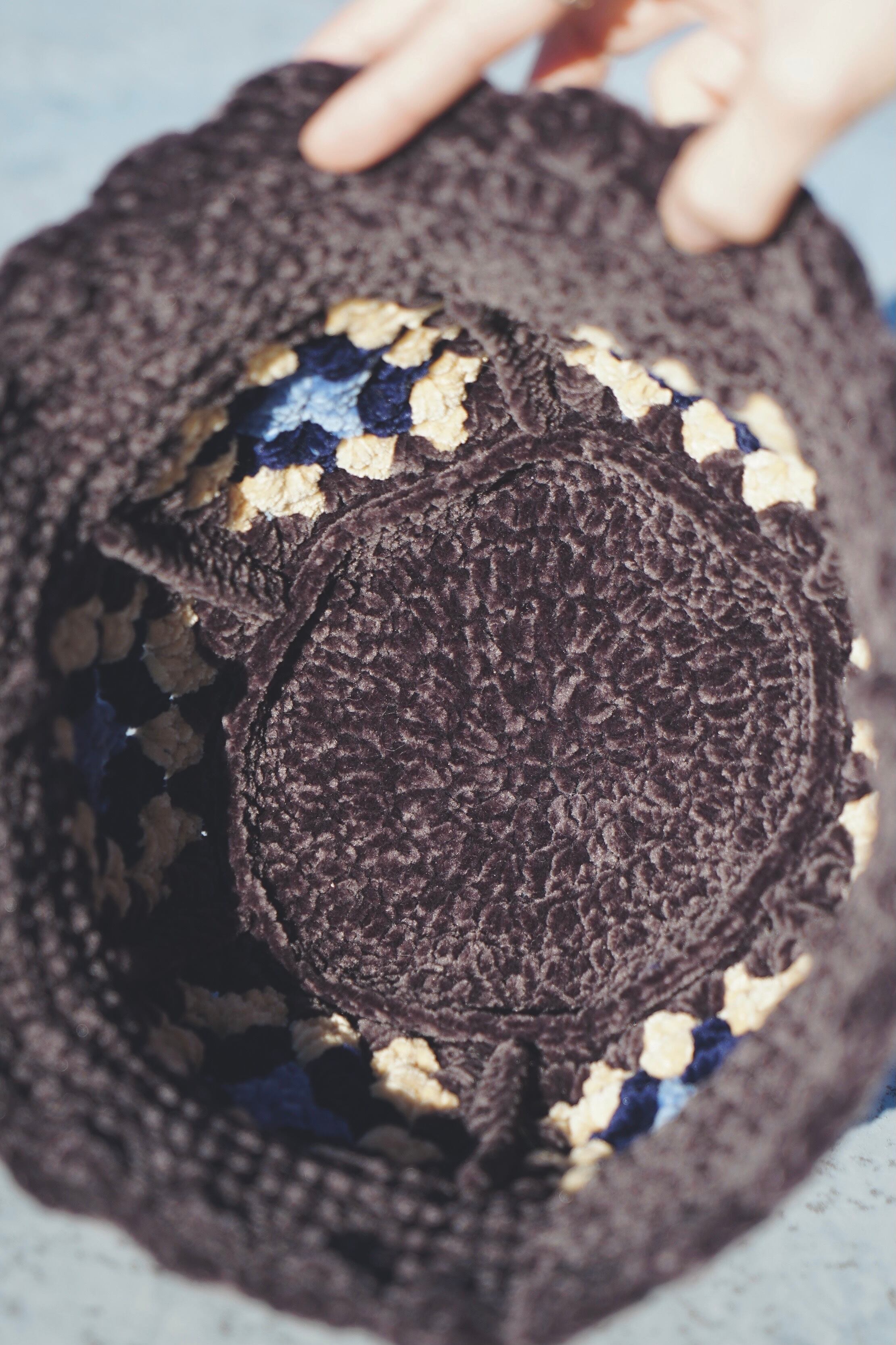 光沢感のあるモール糸をボディに使用したクロッシェです。合わせるコーディネートを選ばない、すっきりとしたシルエットに仕上げました。