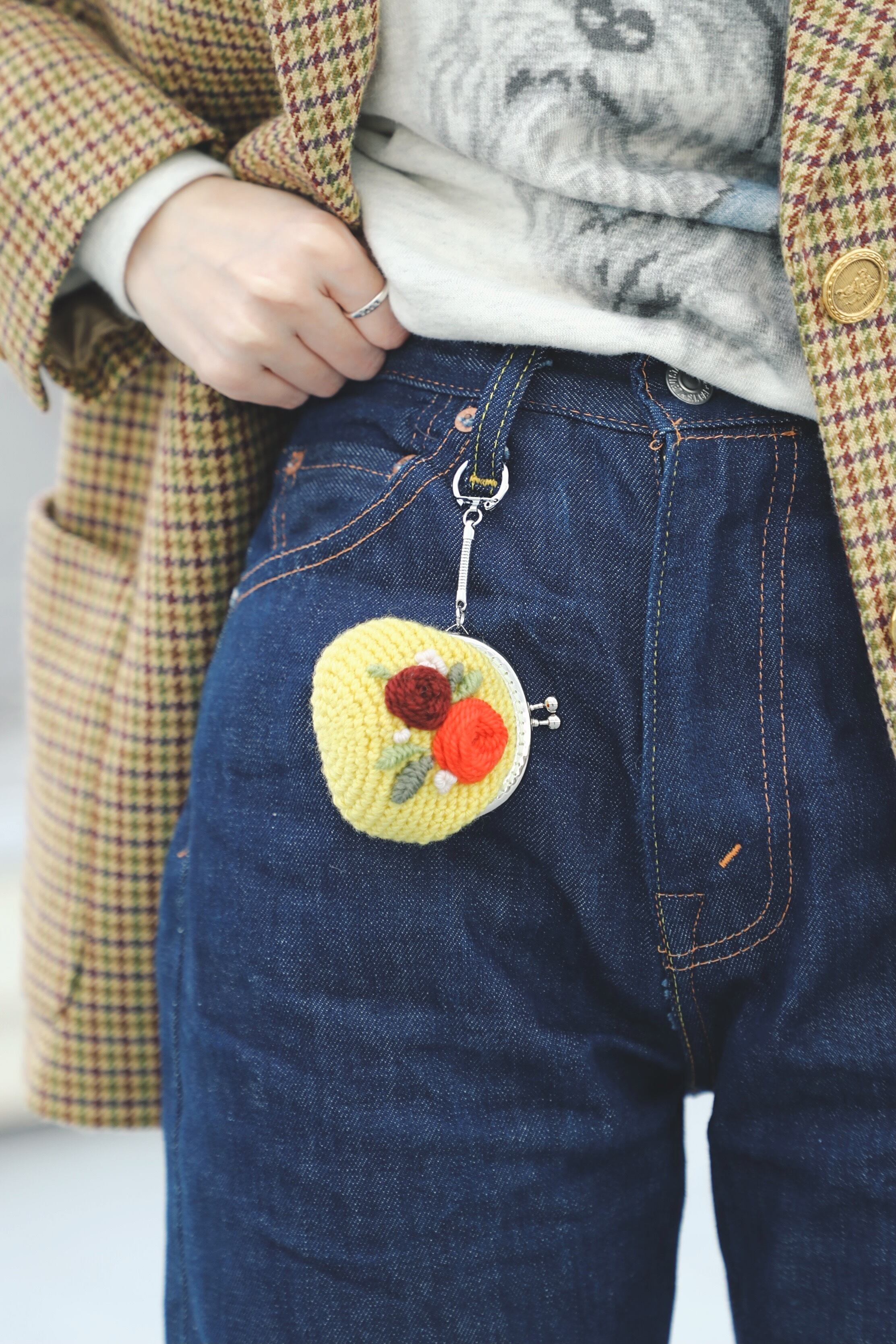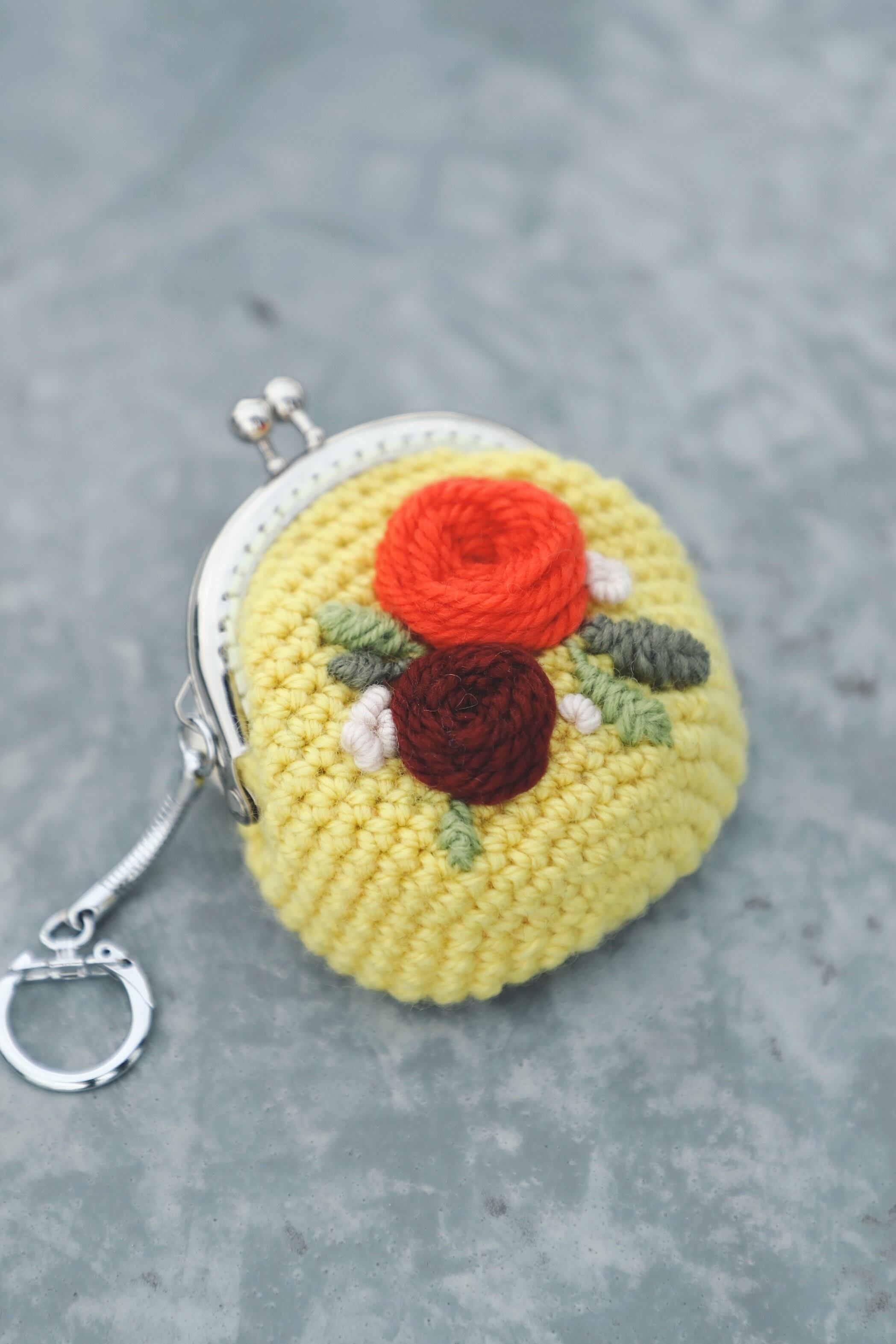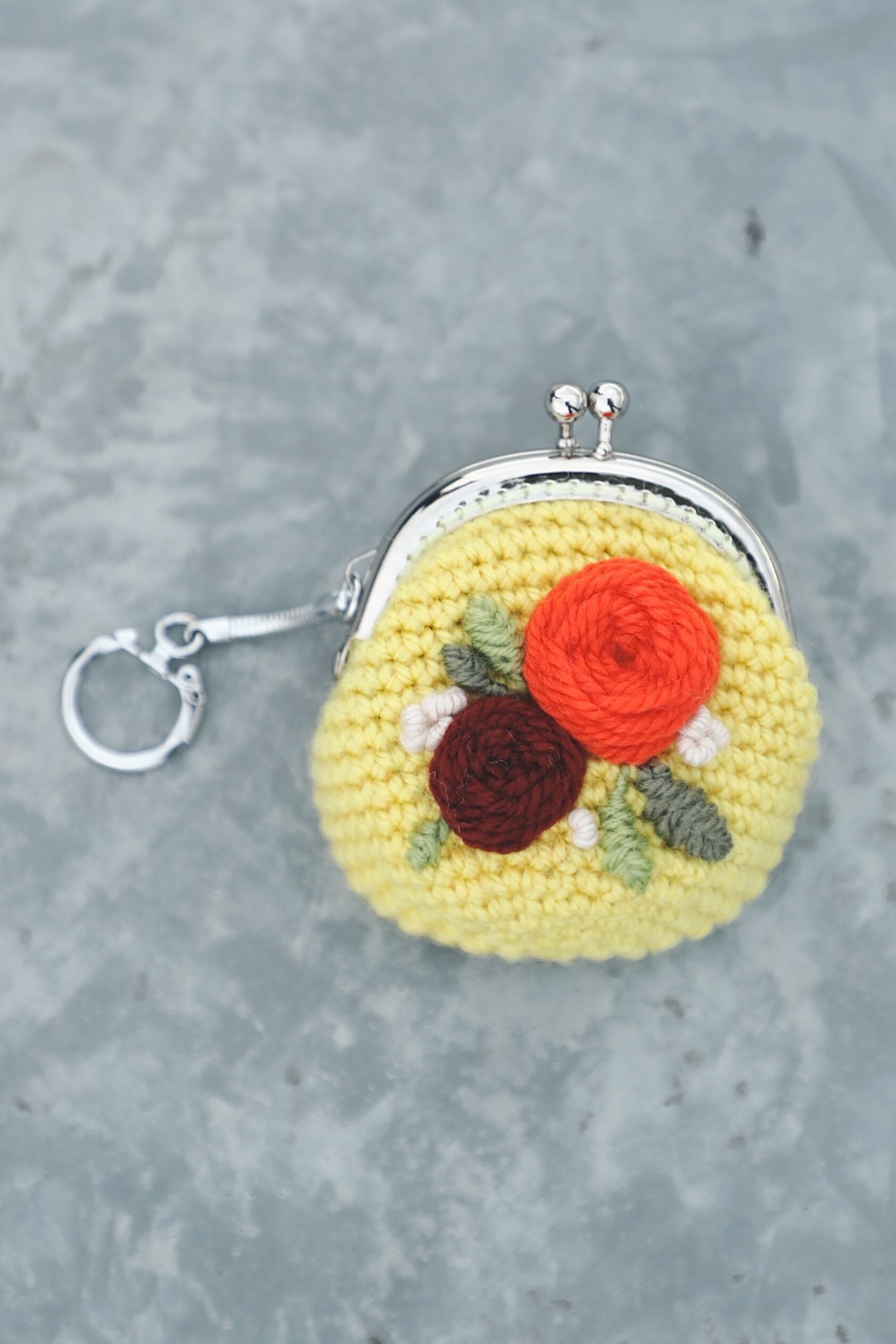 お花の刺繍を施した、ミニサイズのがま口ポーチです。キーホルダー付きなので、お好きな箇所につけてお楽しみ下さい。