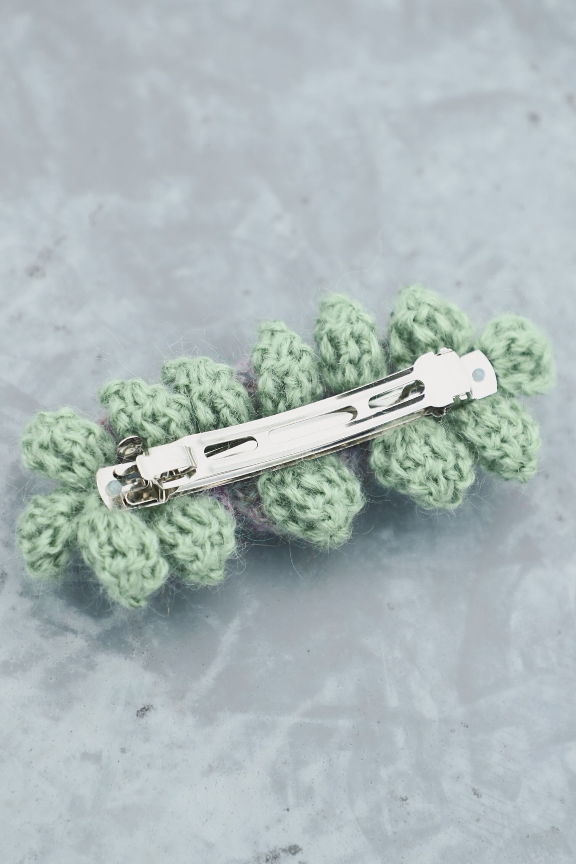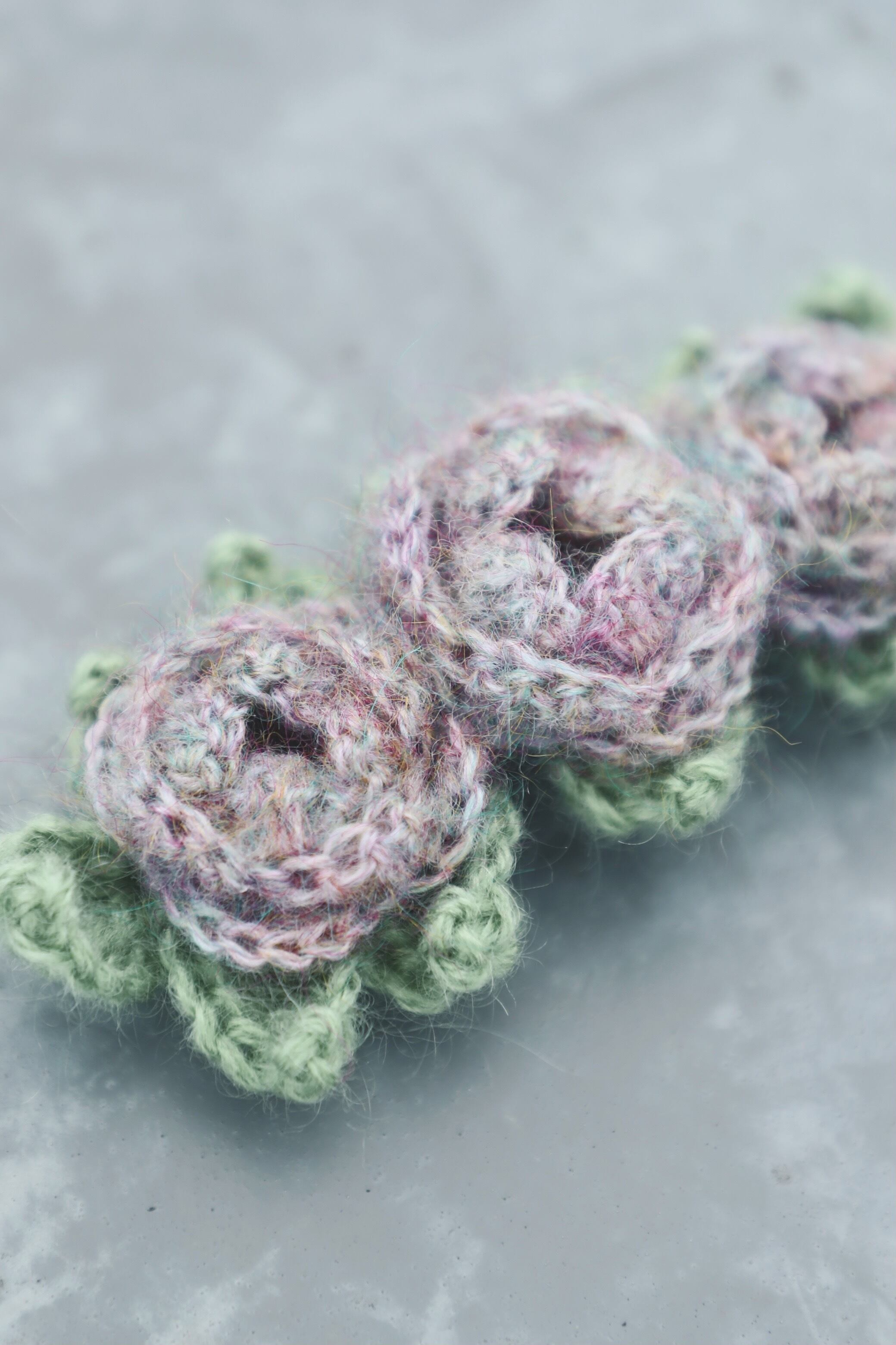 モヘア糸を使用した、ヘアアクセサリーです。ふんわりとしたカラーの薔薇が、シンプルながらも存在感のある1点です。