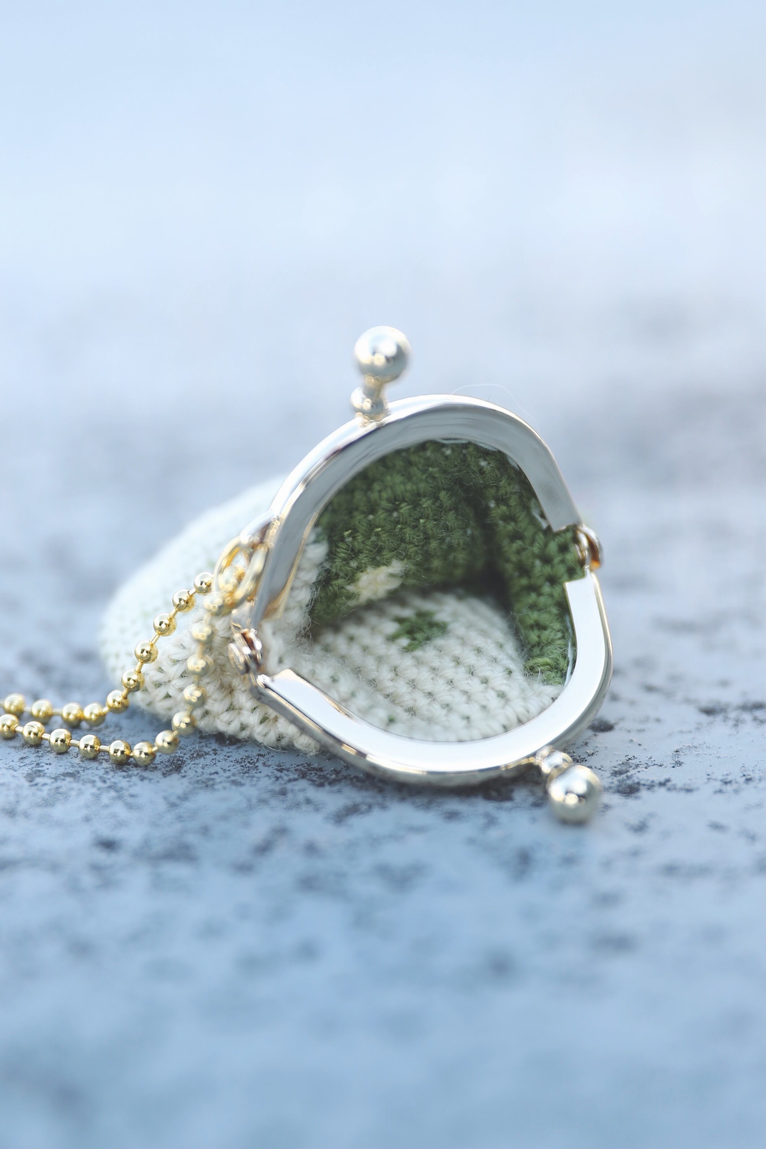 ミニミニサイズのがま口ポーチです。小物入れとしてはもちろん、首から下げてアクセサリー感覚でお楽しみいただけます。