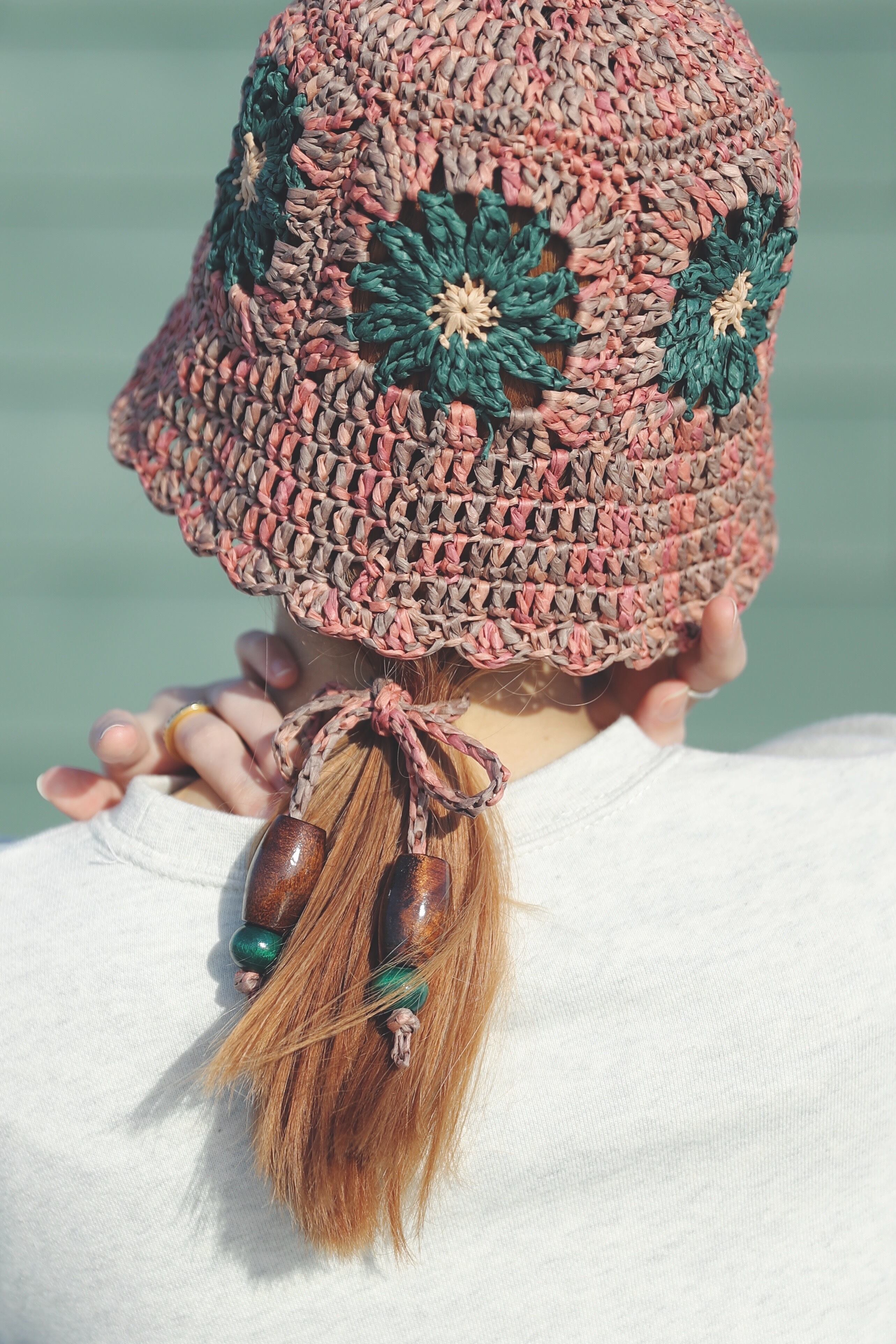 flower motif crochet summer hat