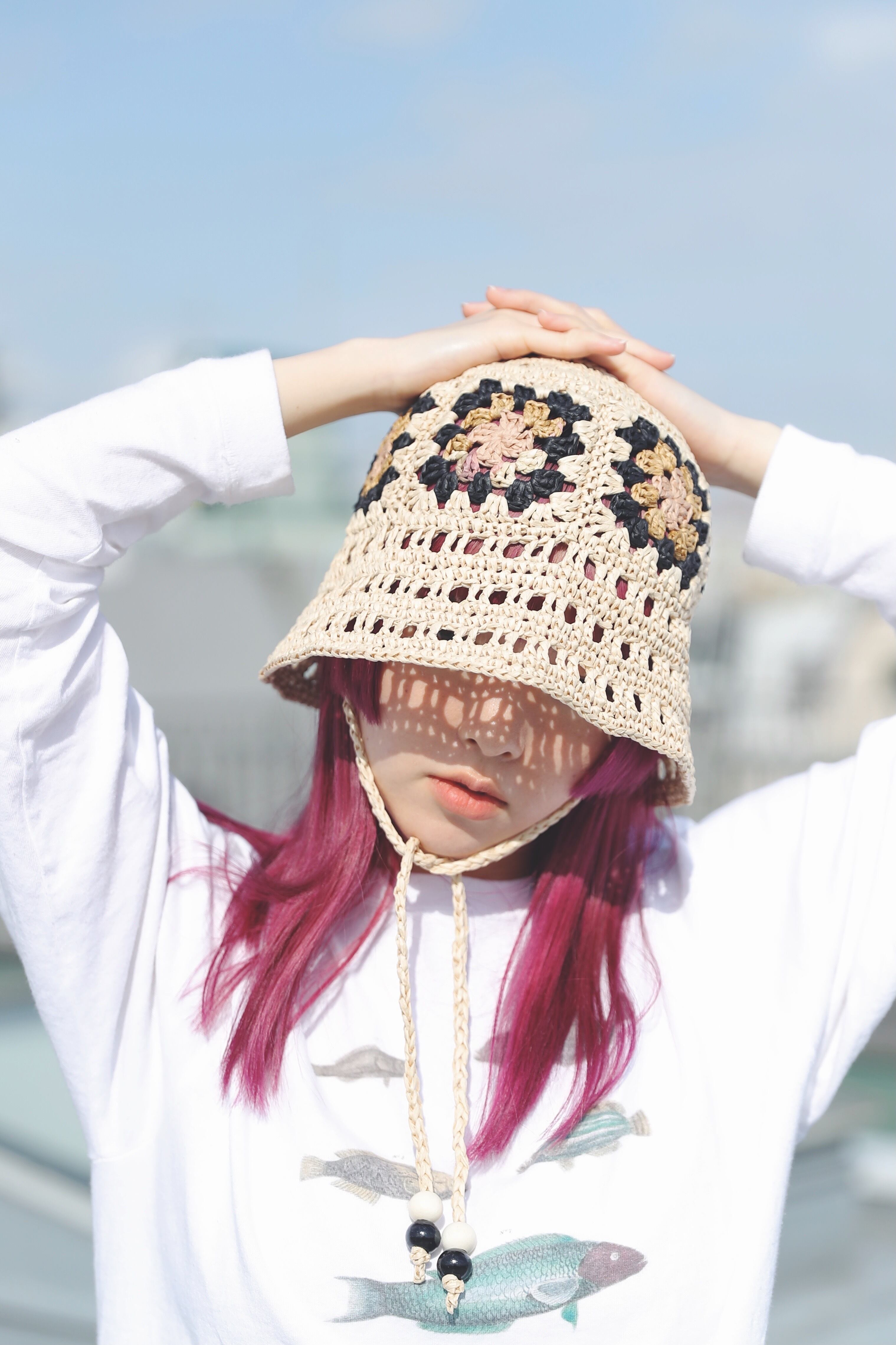 マニラ麻100%の糸を使用した、春夏仕様のクロッシェです。糸には撥水加工が施してあり、堅牢度も高いのでお洗濯も可能です。とても柔らかく軽いので、折り畳んで持ち運びもしていただけます。合わせるコーディネートを選ばない、すっきりとしたシルエットに仕上げました。