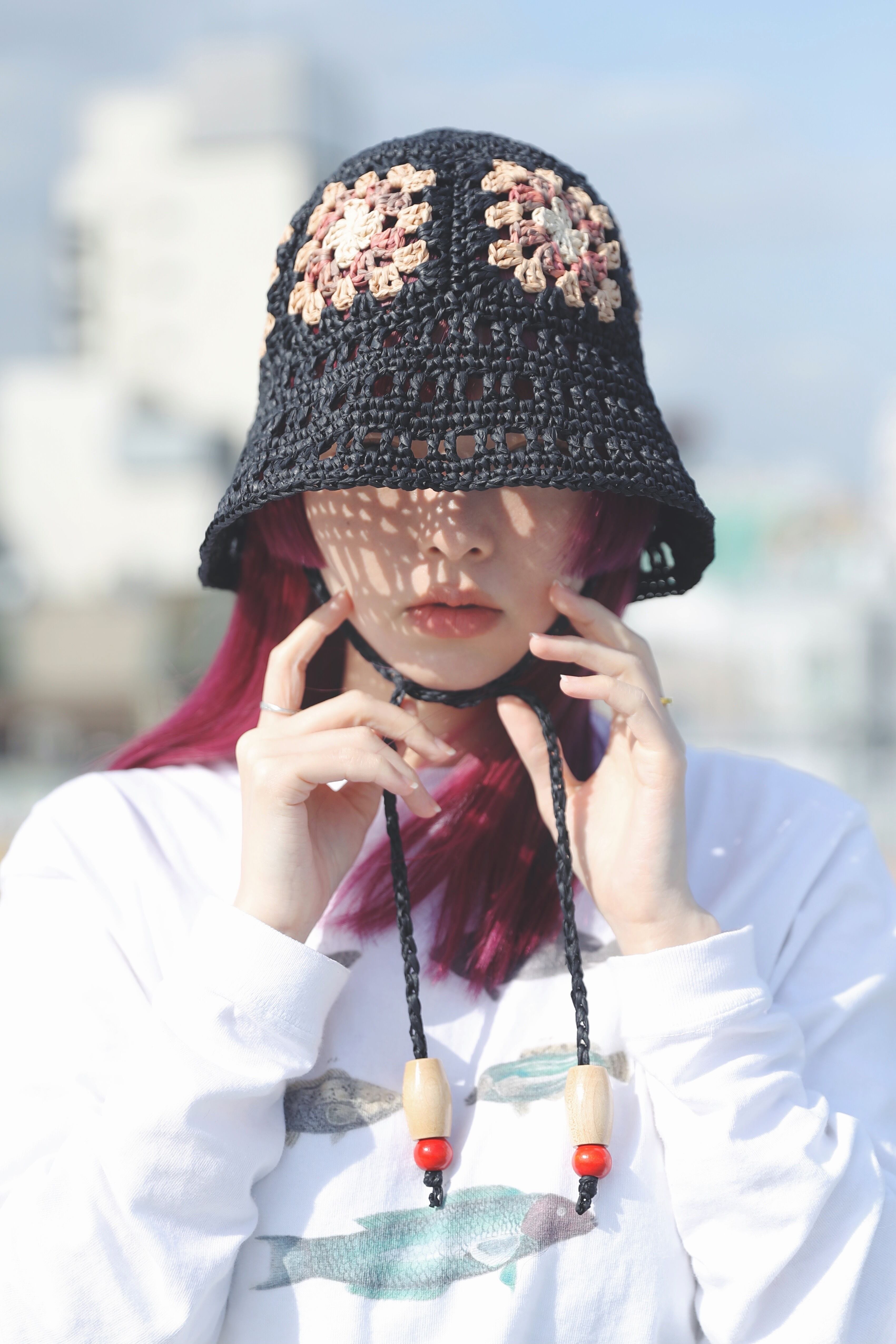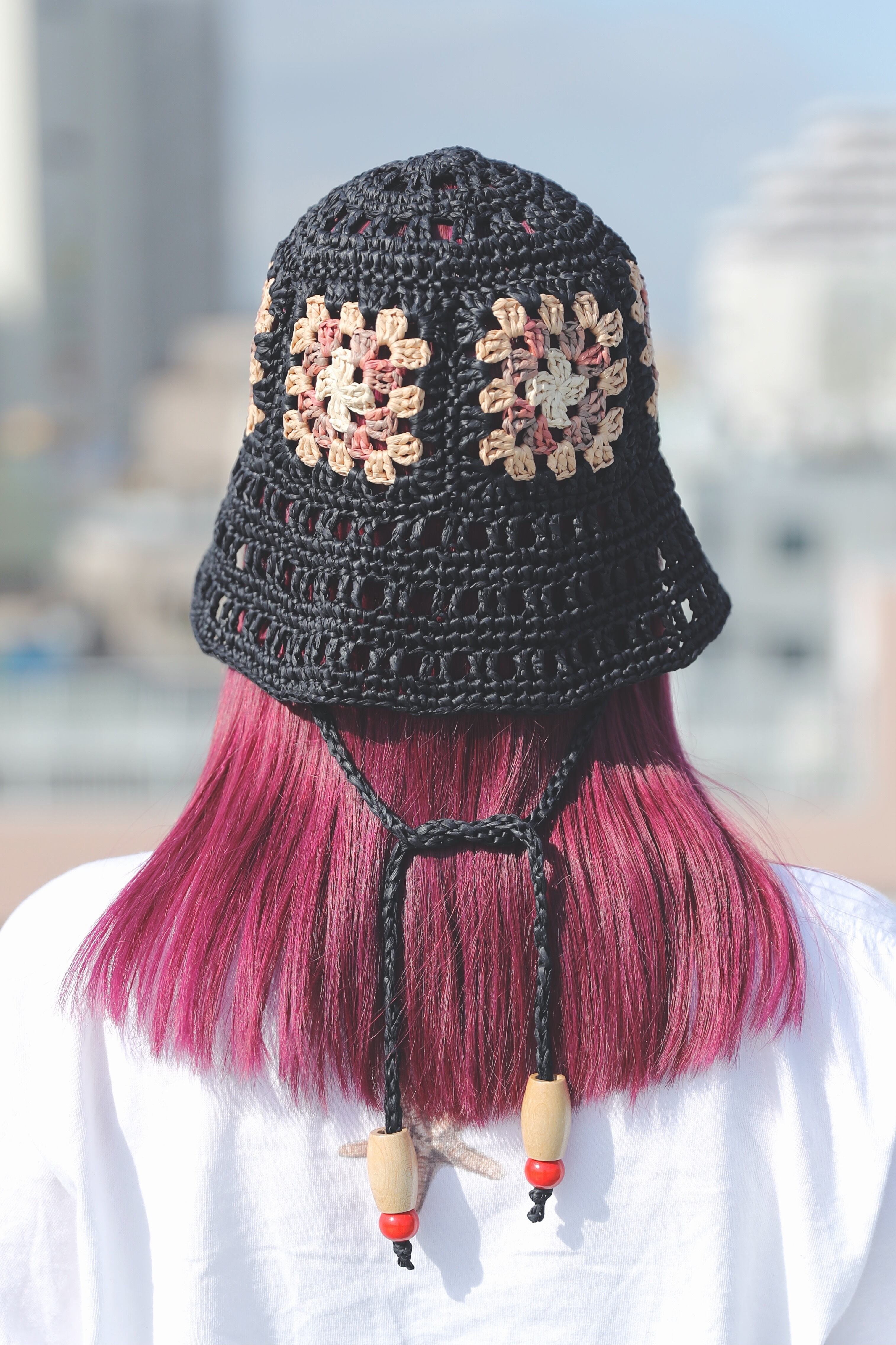 マニラ麻100%の糸を使用した、春夏仕様のクロッシェです。糸には撥水加工が施してあり、堅牢度も高いのでお洗濯も可能です。とても柔らかく軽いので、折り畳んで持ち運びもしていただけます。合わせるコーディネートを選ばない、すっきりとしたシルエットに仕上げました。