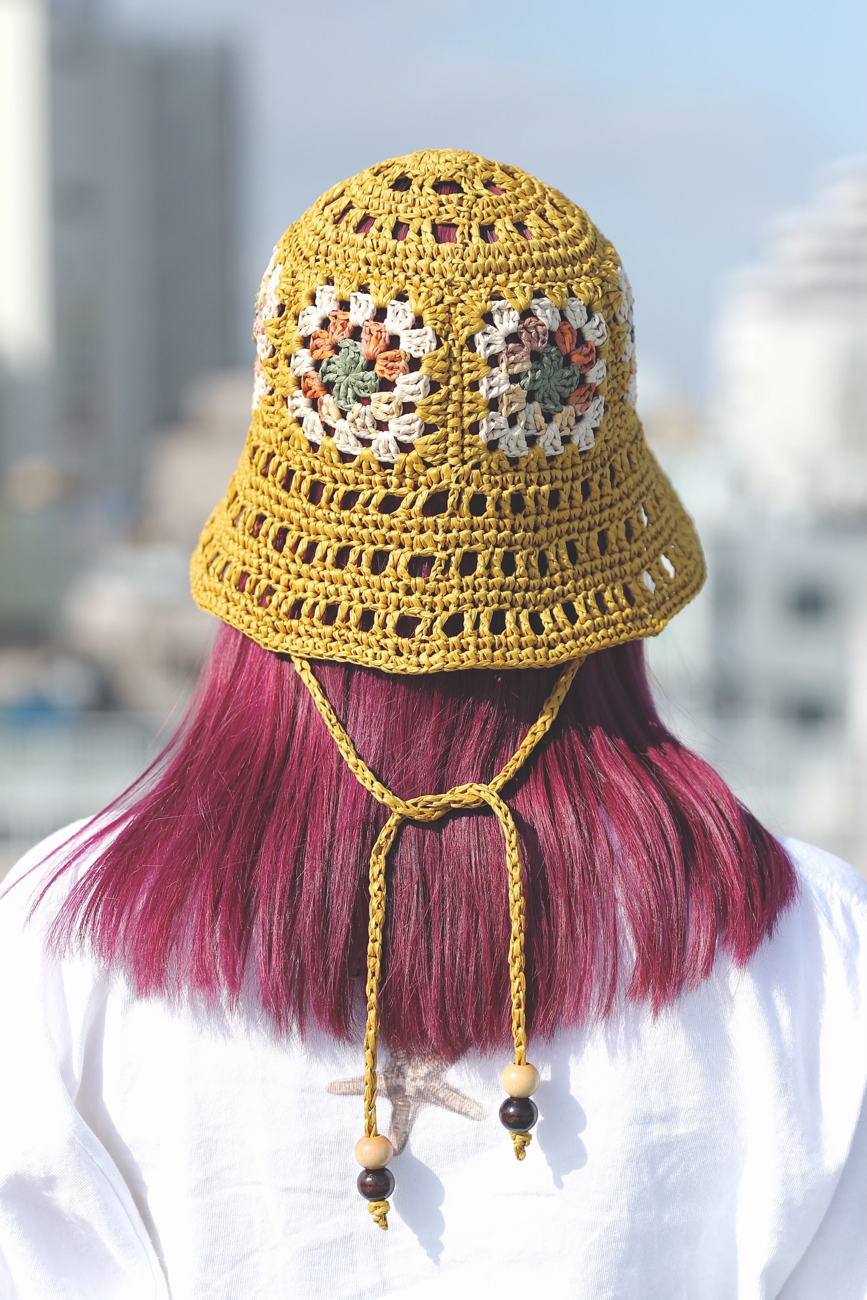 granny square crochet summer hat【YEL】