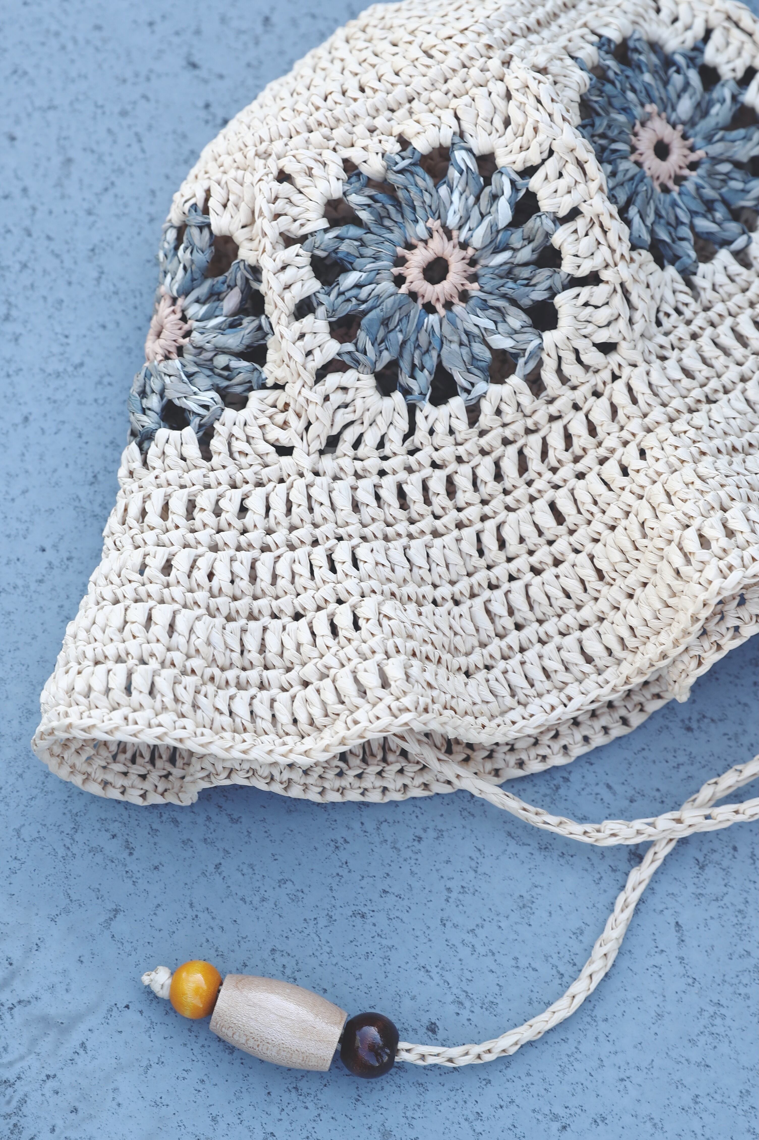 マニラ麻100%と和紙100%の糸を使用した、春夏仕様のクロッシェです。使い込む程に柔らかく、とても軽いので、折り畳んで持ち運びもしていただけます。
