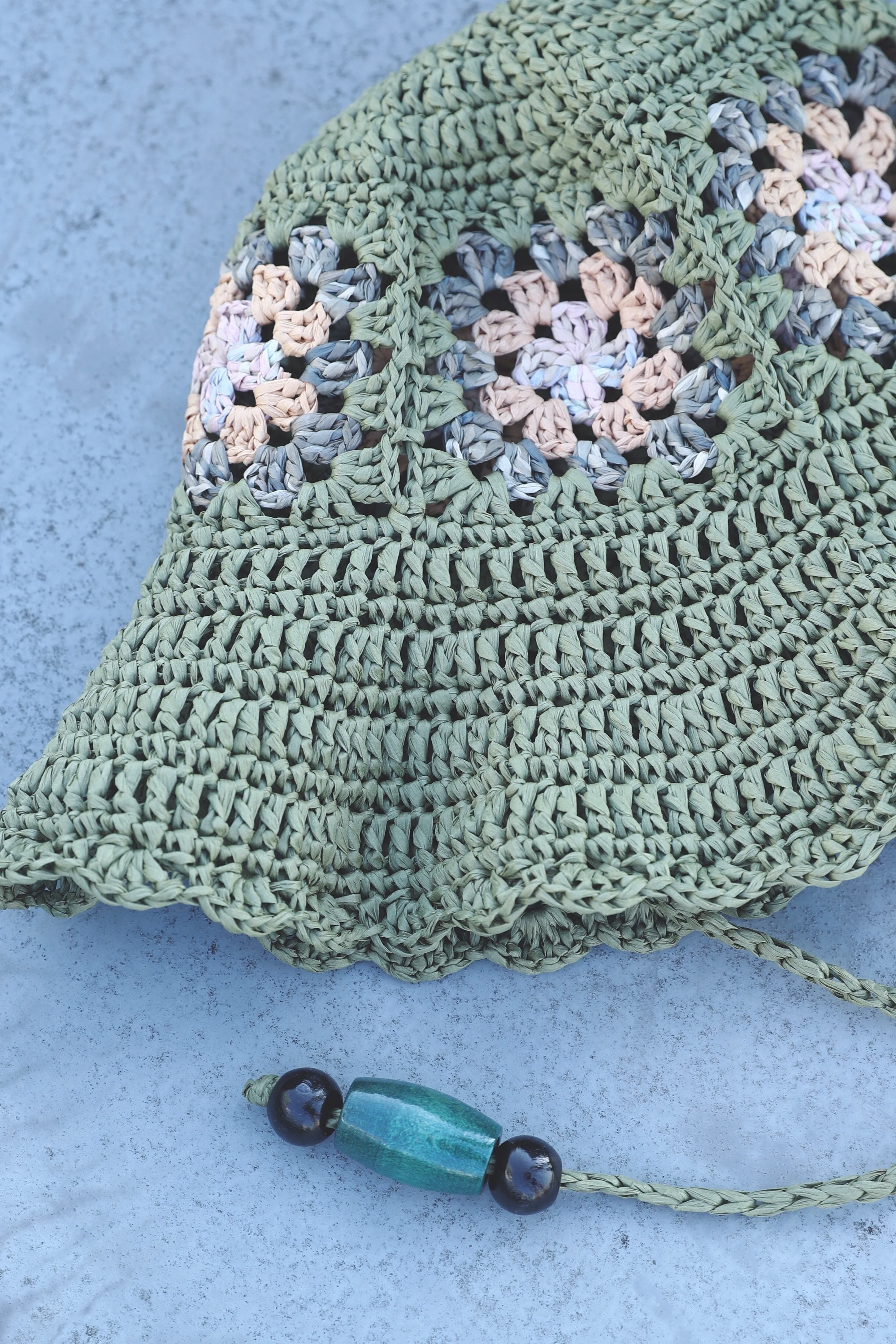 マニラ麻100%と和紙100%の糸を使用した、春夏仕様のクロッシェです。使い込む程に柔らかく、とても軽いので、折り畳んで持ち運びもしていただけます。