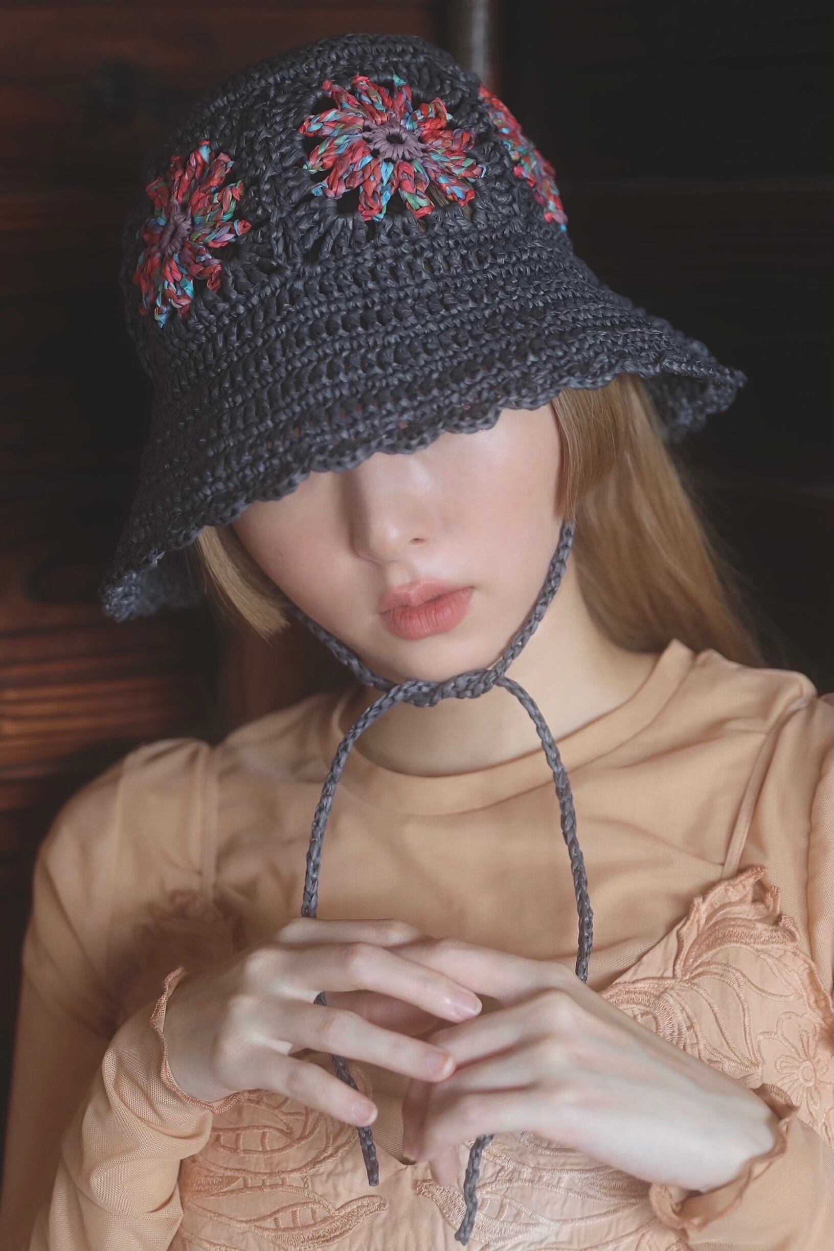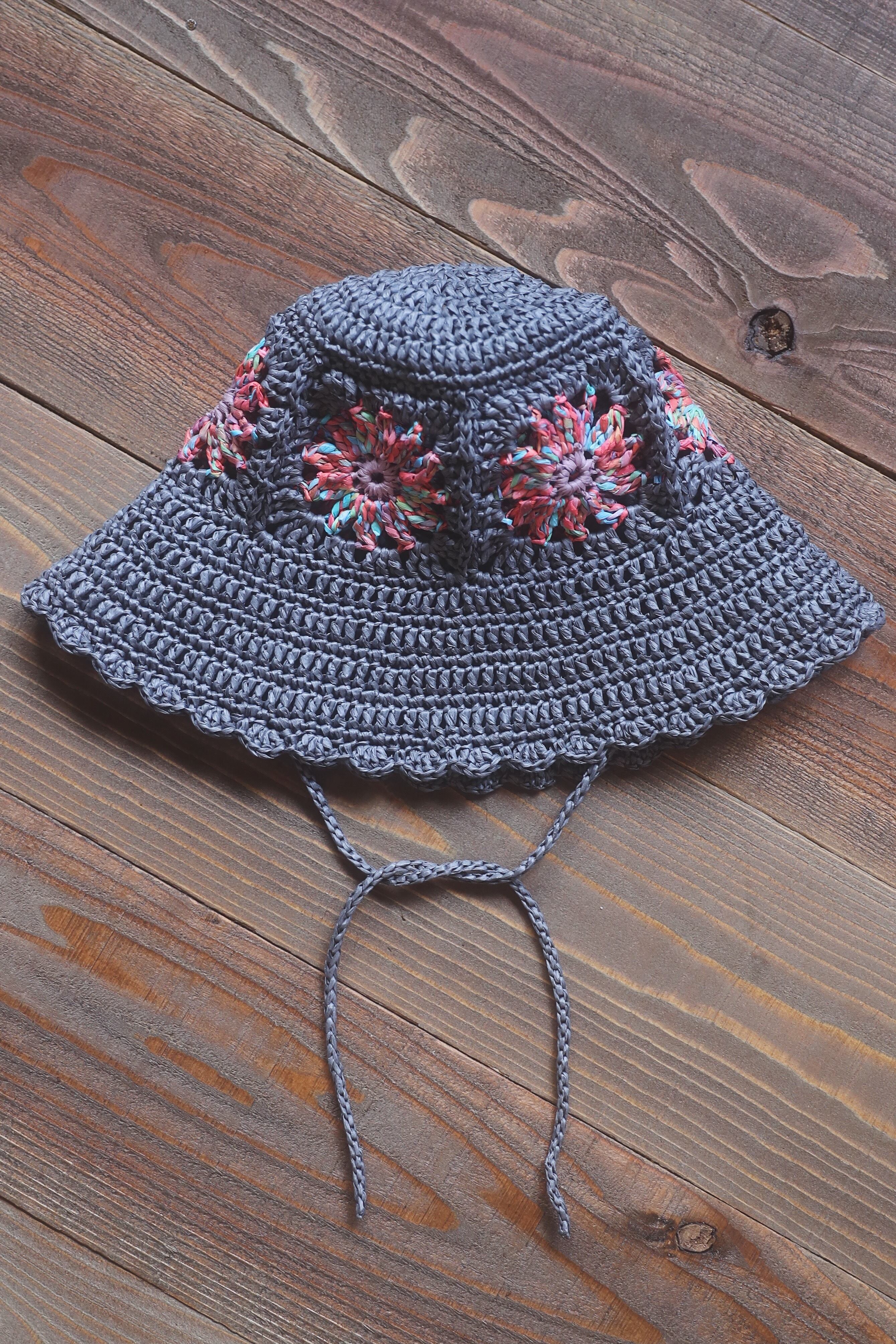 flower motif crochet summer hat