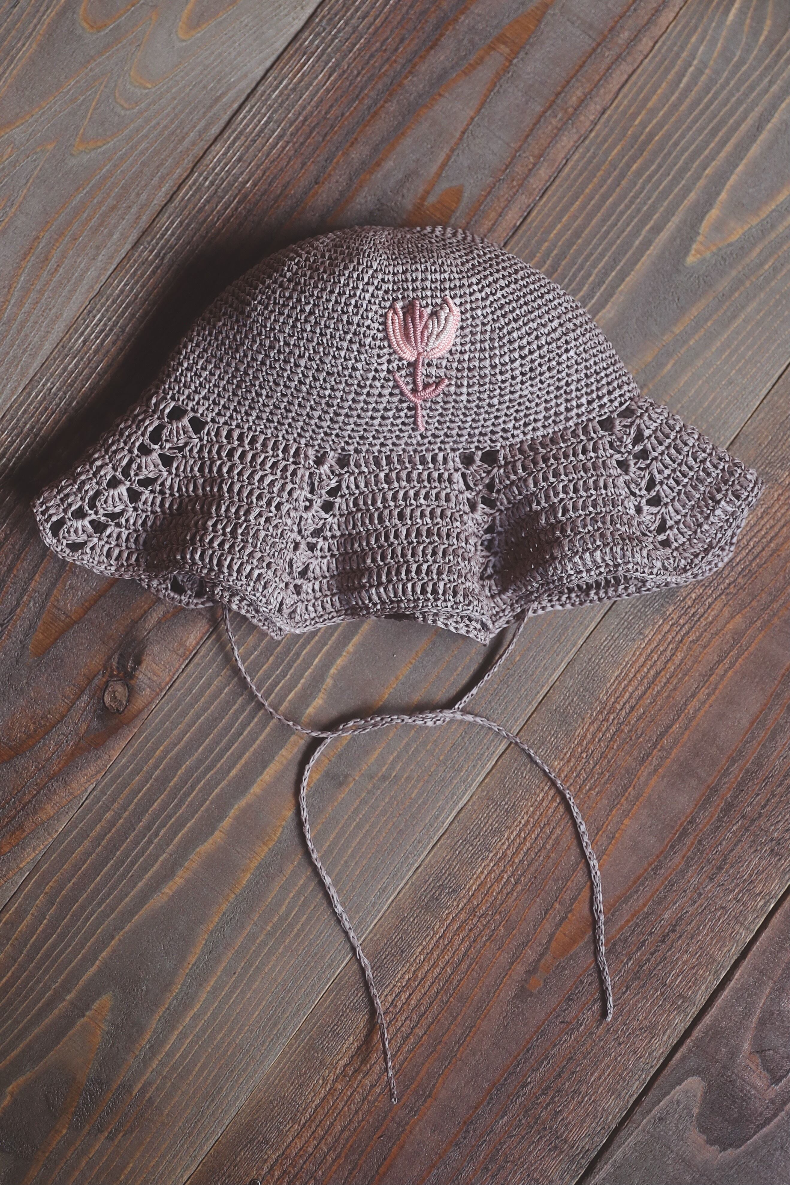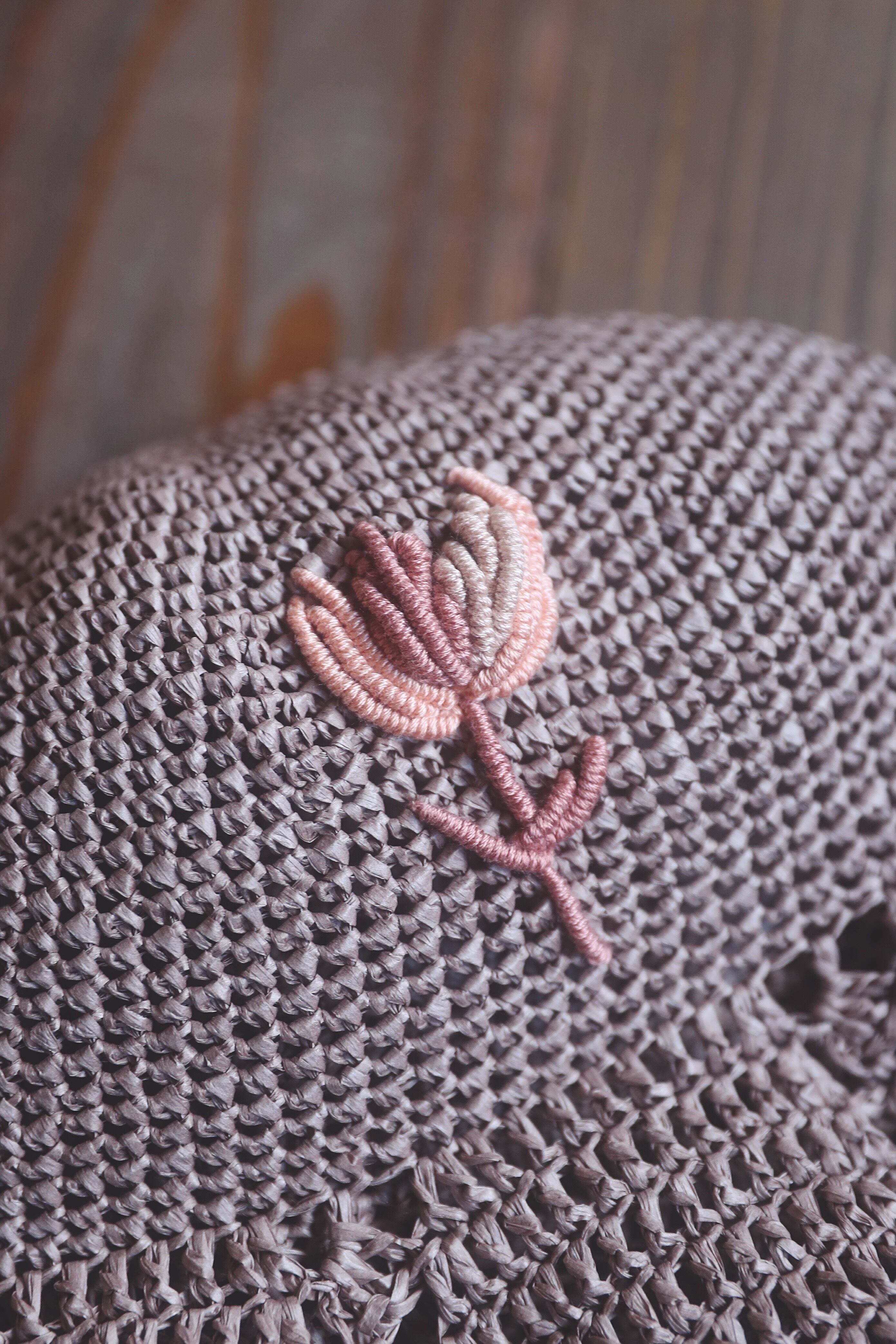 和紙100%の糸を使用した、春夏仕様のクロッシェです。フロント部分に刺繍されたチューリップモチーフが、可愛らしい印象のアイテム。使い込む程に柔らかく、とても軽いので、折り畳んで持ち運びもしていただけます。