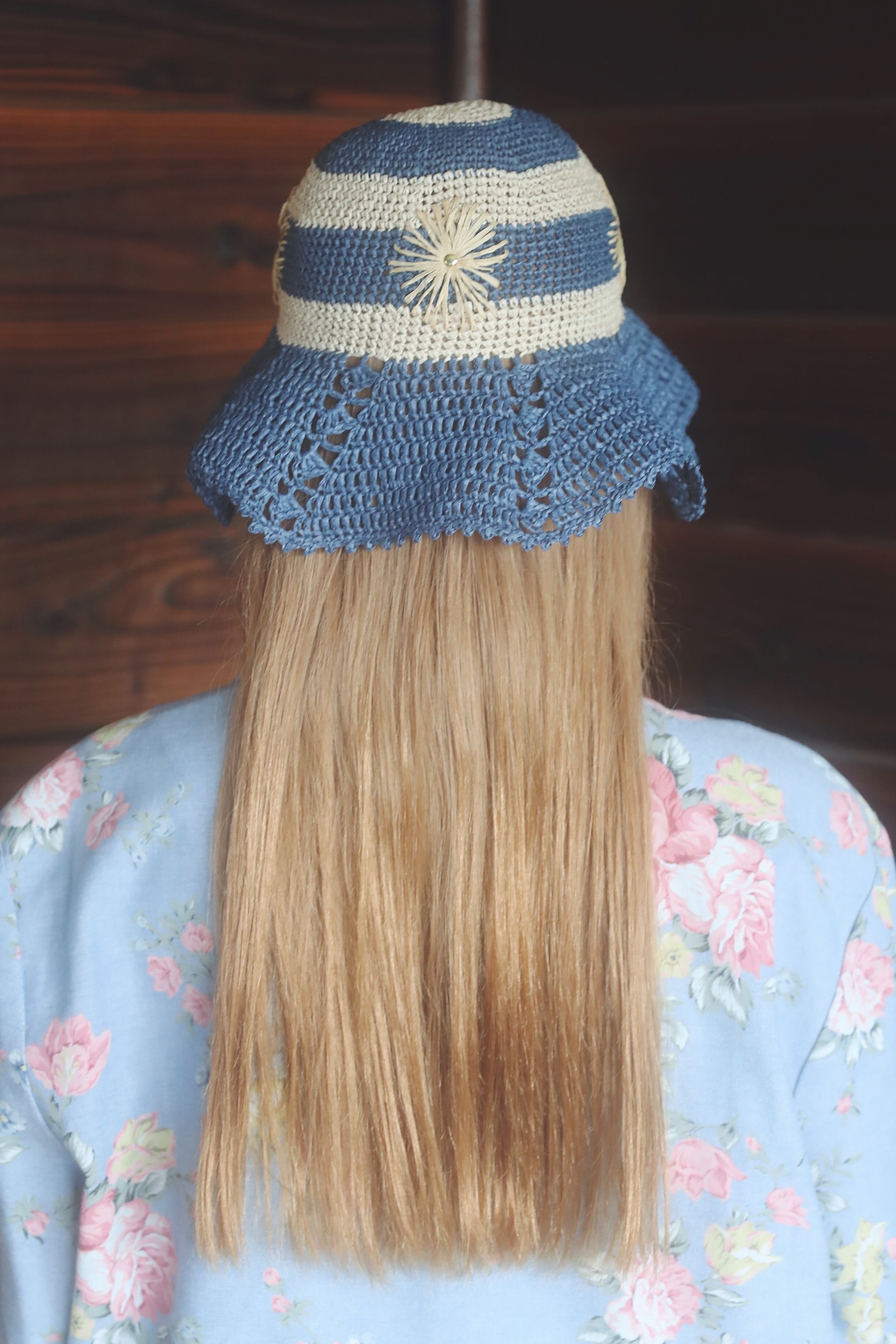 和紙100%の糸を使用した、春夏仕様のクロッシェです。お花の刺繍とゴールドのスタッズが、さりげないアクセントになります。使い込む程に柔らかく、とても軽いので、折り畳んで持ち運びもしていただけます。