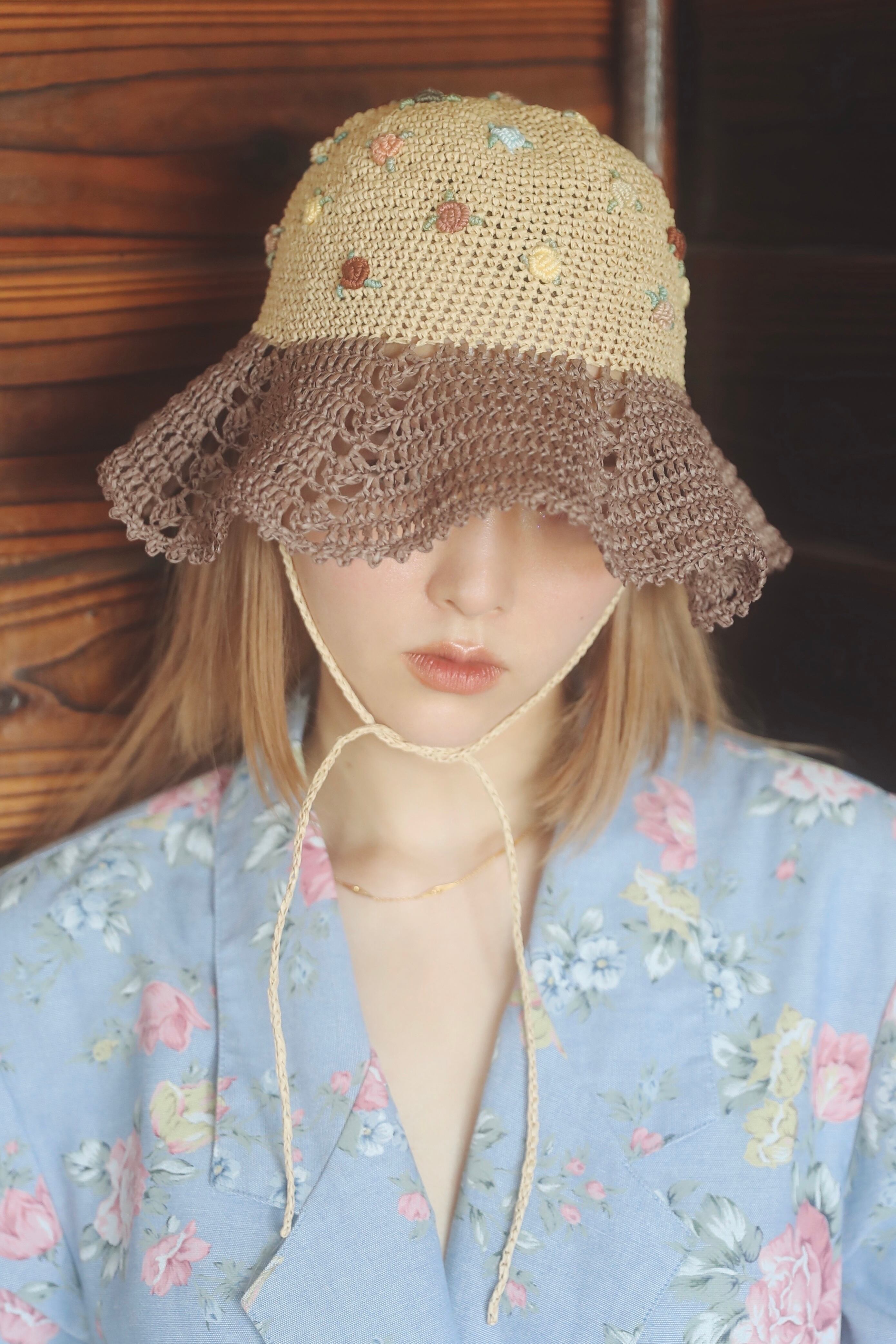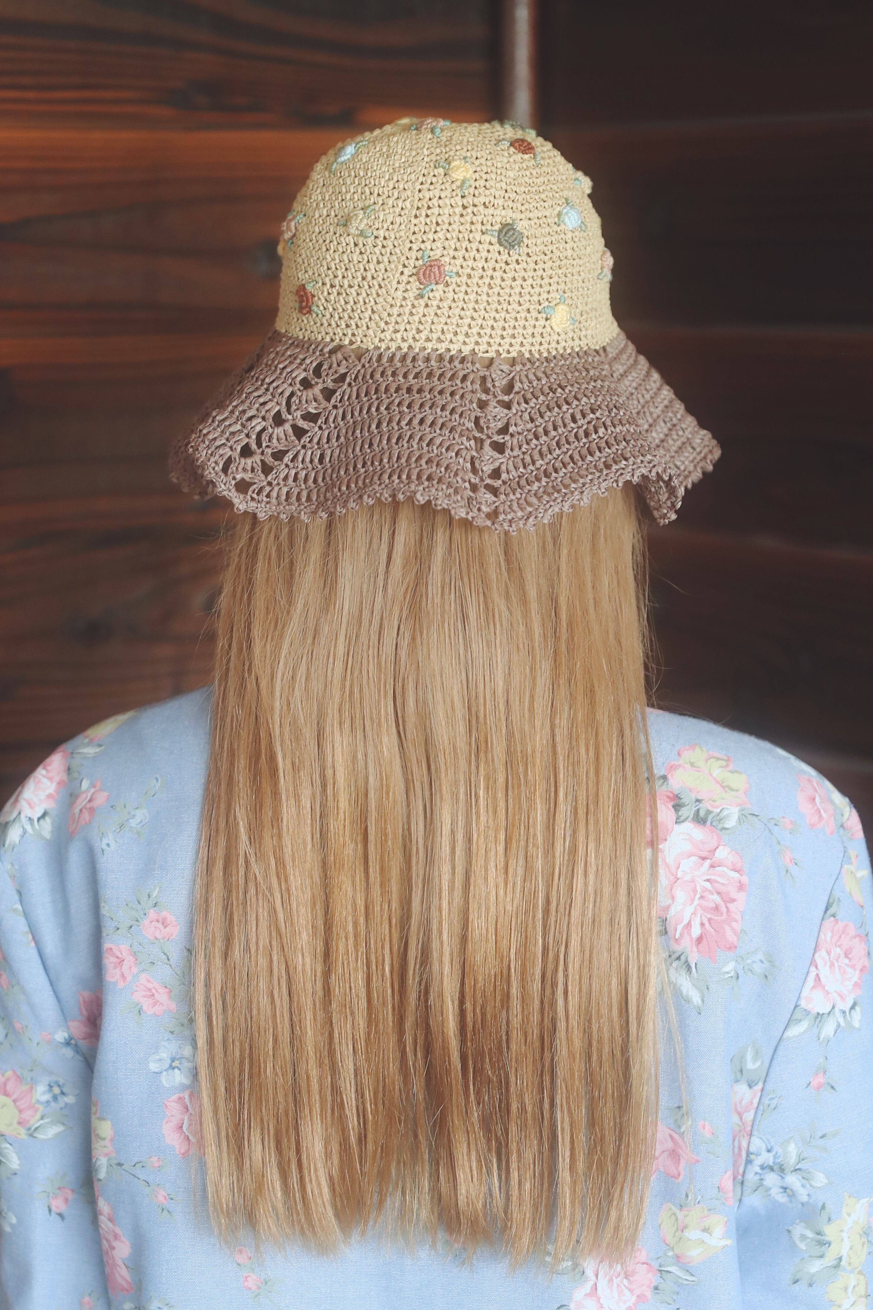 和紙100%の糸を使用した、春夏仕様のクロッシェです。散りばめられた刺繍のお花が、可愛らしい印象のアイテム。使い込む程に柔らかく、とても軽いので、折り畳んで持ち運びもしていただけます。