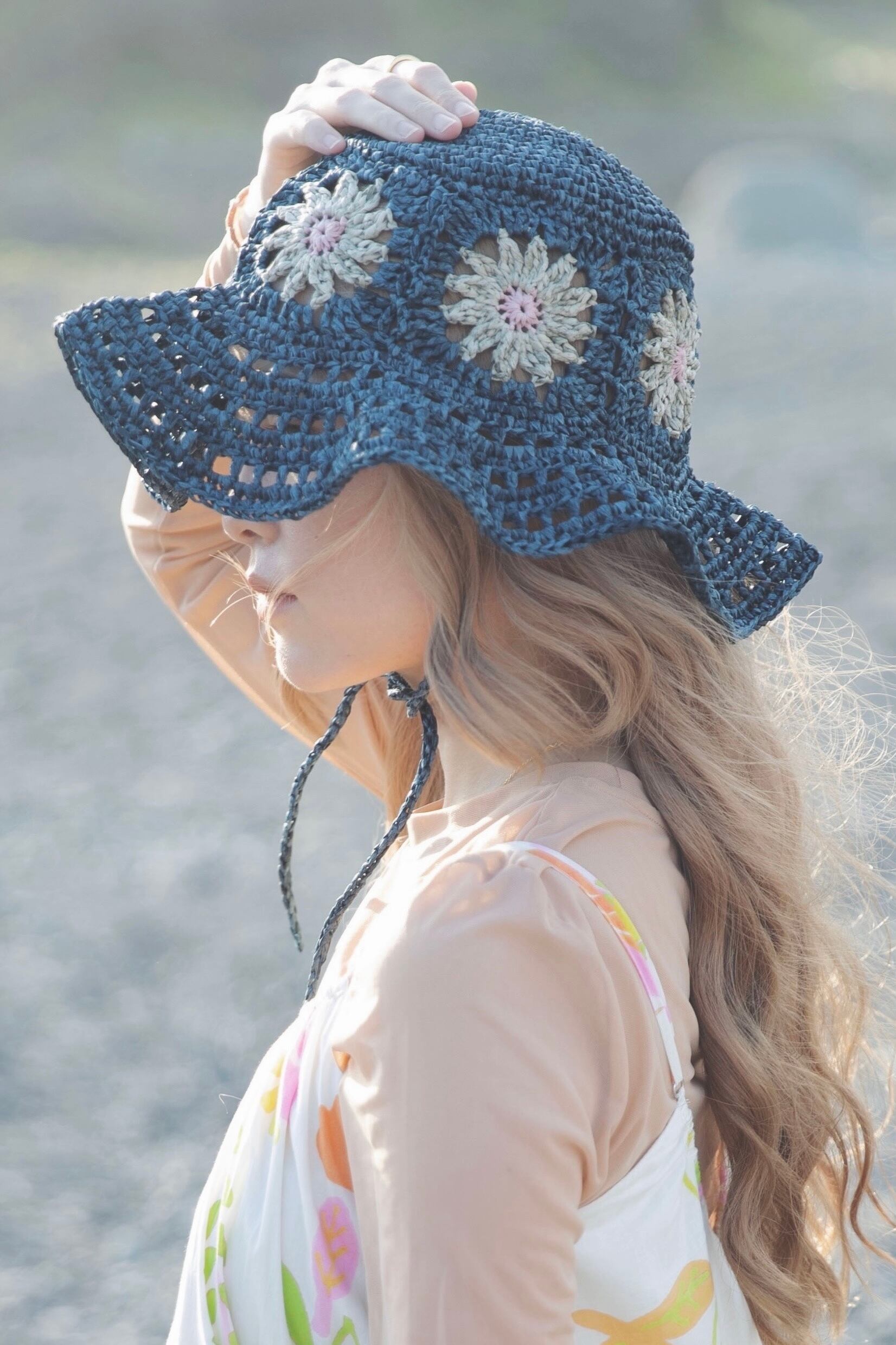 マニラ麻100%の糸を使用した、春夏仕様のクロッシェです。使い込む程に柔らかく、とても軽いので、折り畳んで持ち運びもしていただけます。
