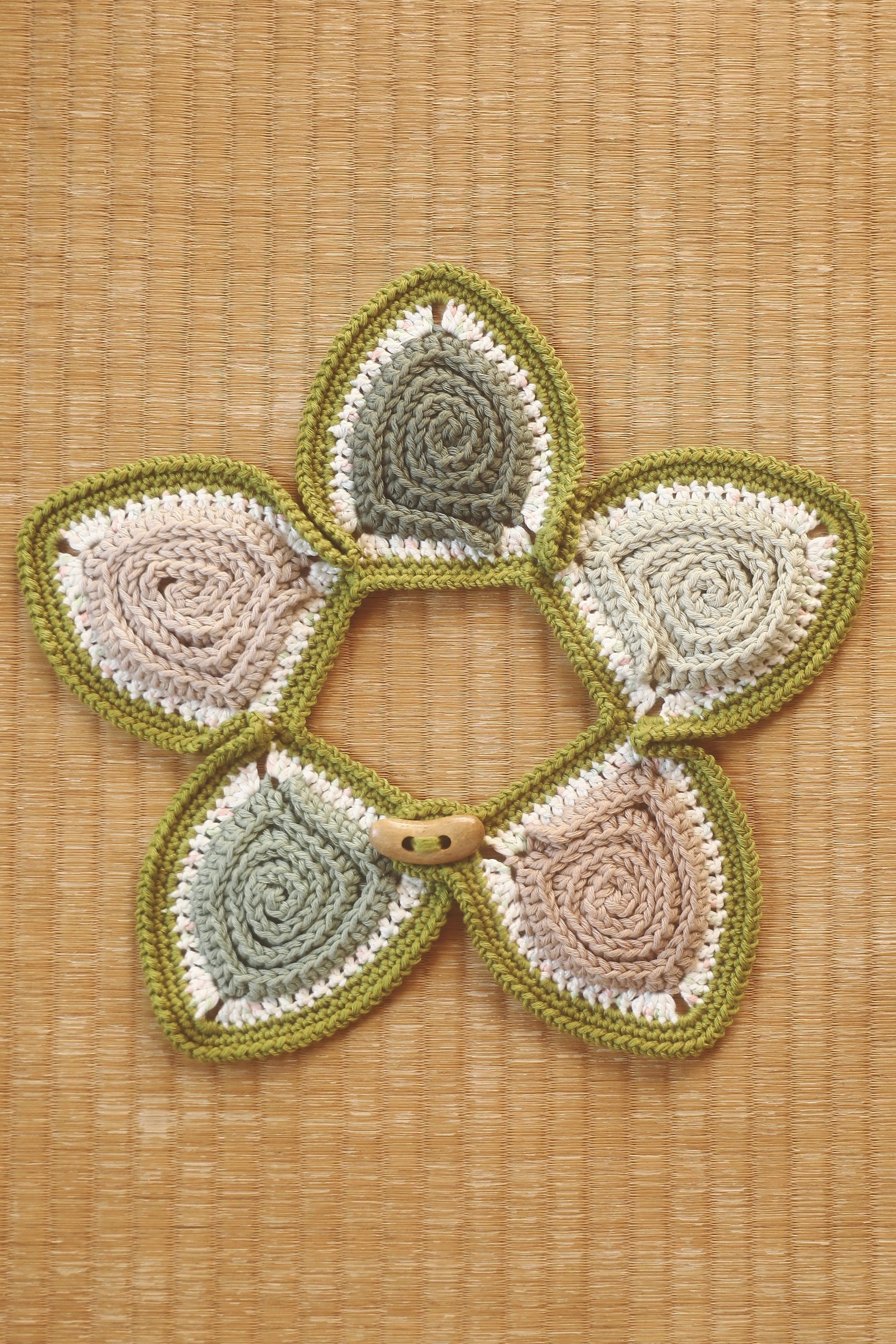 Babytoly Organic cotton yarnsを使用した、つけ襟です。ボタンを背面側にした、2WAYのスタイルでお楽しみいただけます。