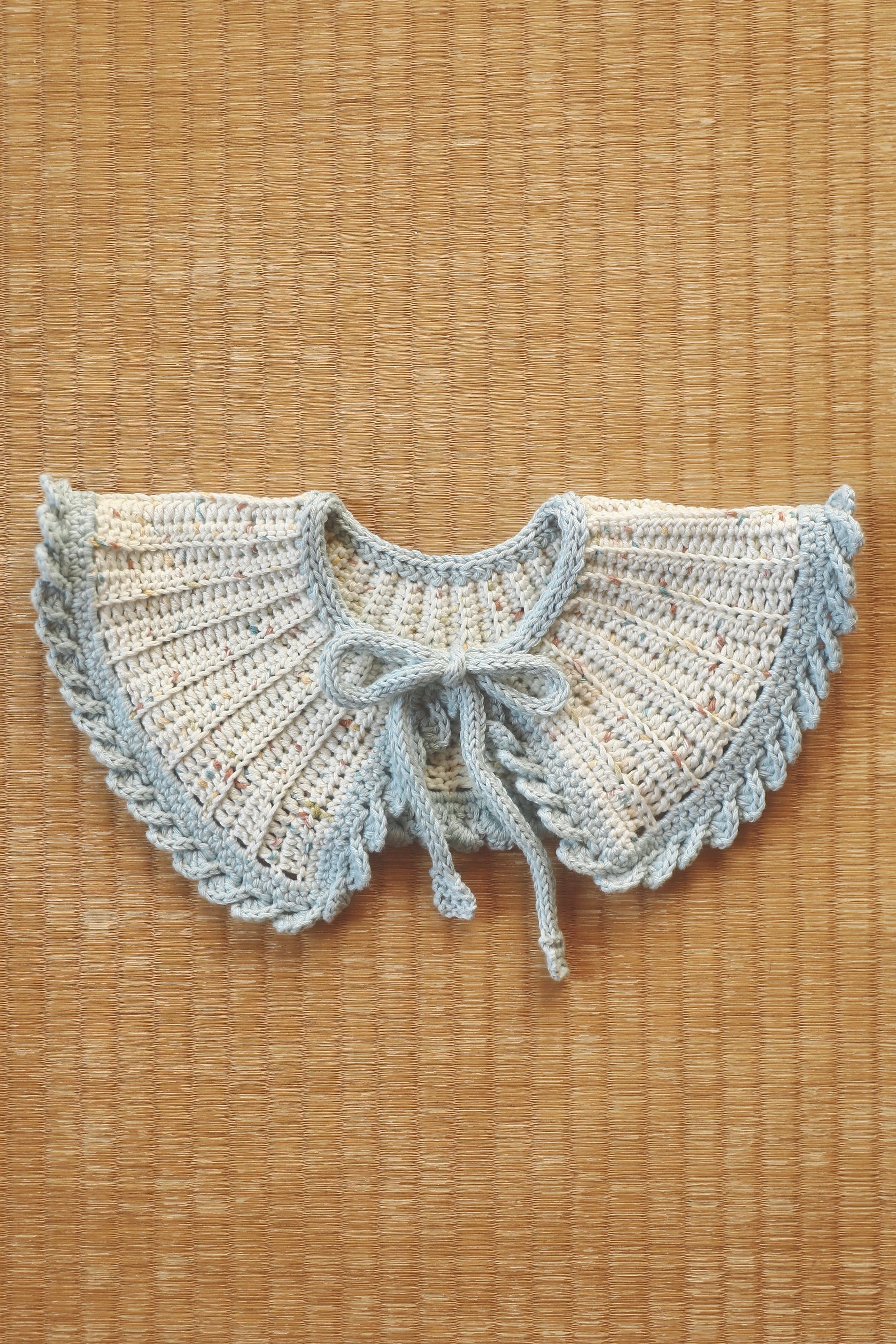Babytoly Organic cotton yarnsを使用した、つけ襟です。存在感のある大きめな襟で、シンプルなトップスとの合わせをお楽しみいただけます。