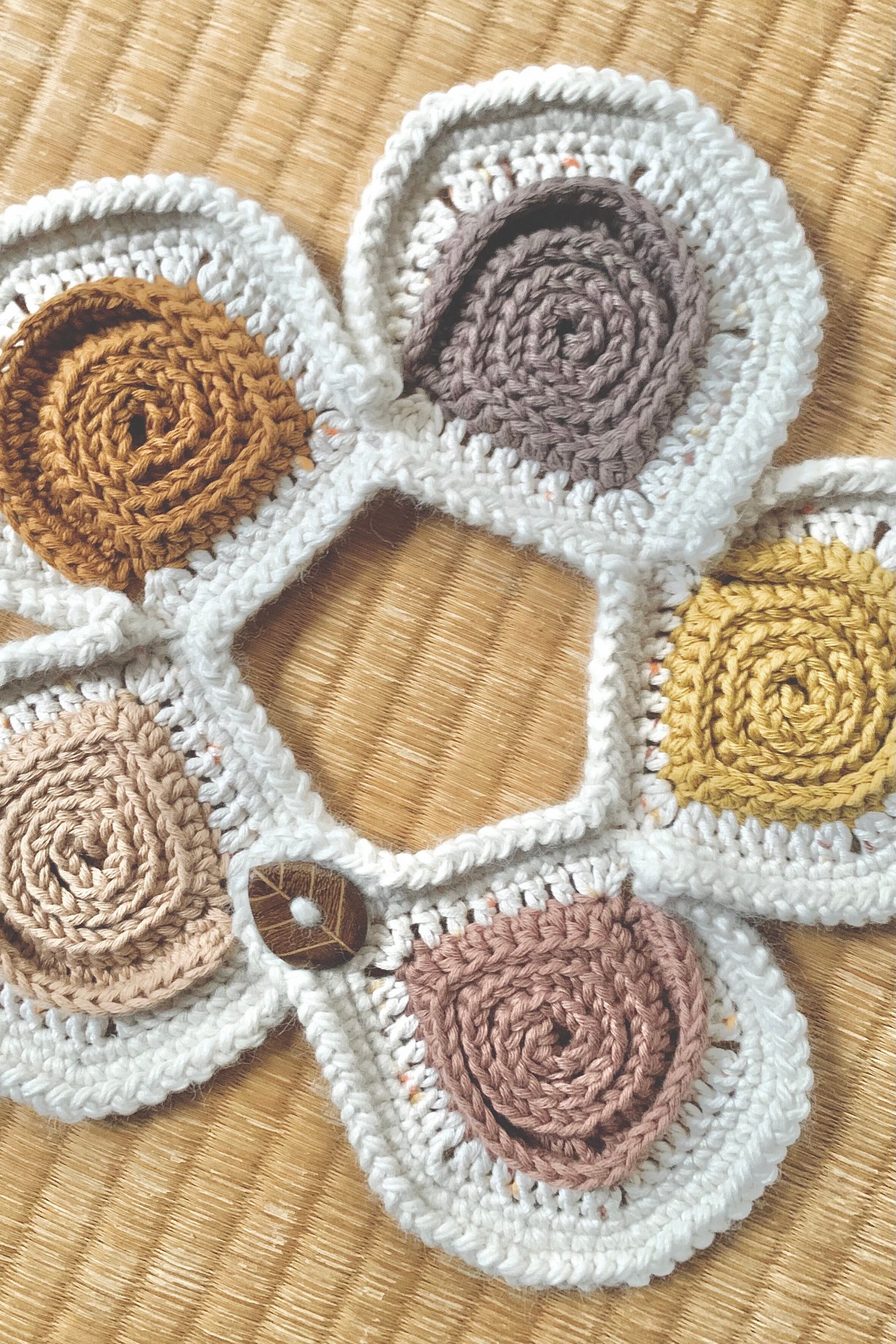 Babytoly Organic cotton yarnsを使用した、つけ襟です。ボタンを背面側にした、2WAYのスタイルでお楽しみいただけます。