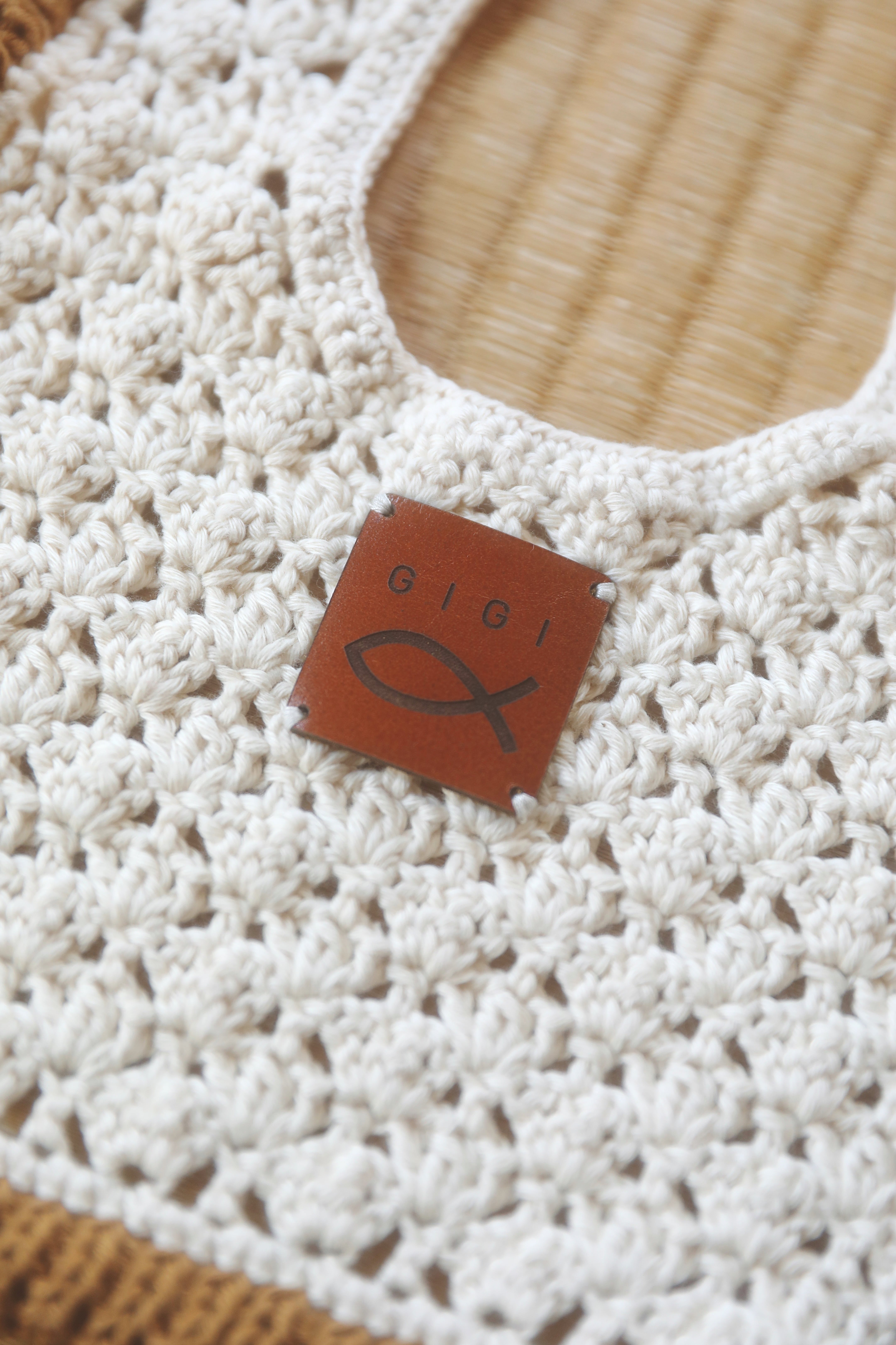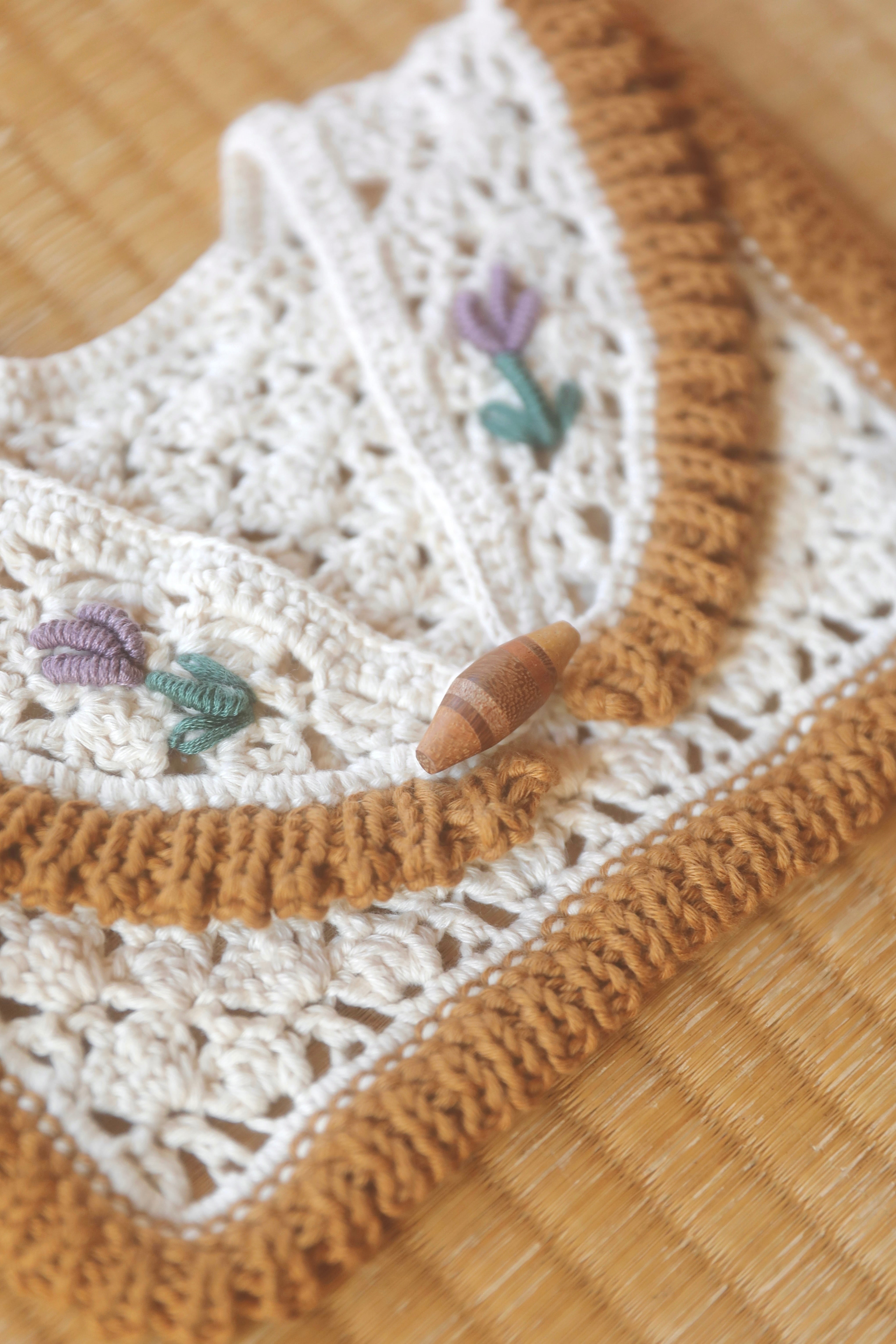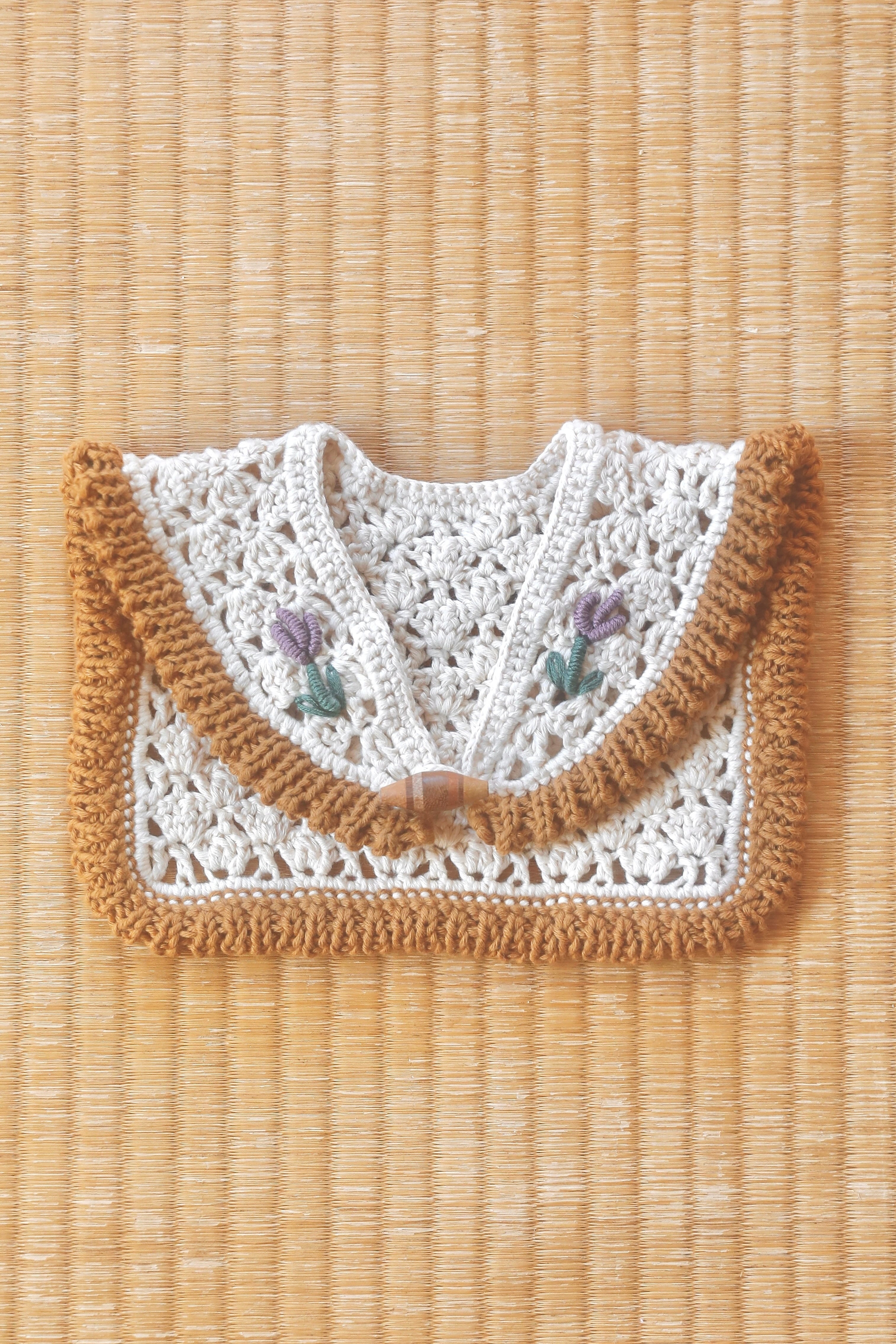 Babytoly Organic cotton yarnsを使用した、つけ襟です。存在感のあるセーラーカラーは、シンプルなトップスとの組み合わせを楽しみいただけます。背面には、本革のブランドタグを施しました。
