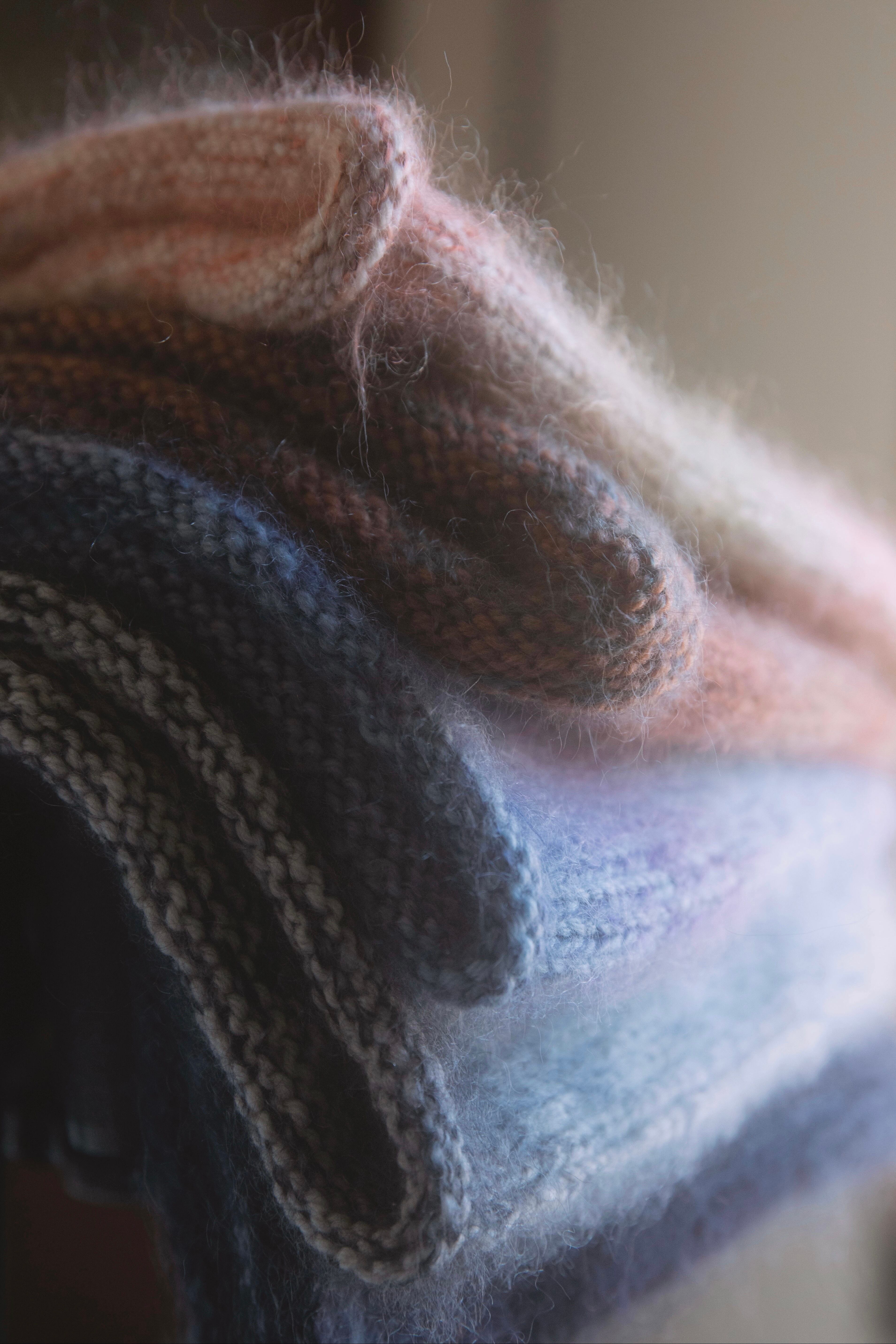 肌触りの良いモヘア糸を使用した、手編みの猫耳ニット帽です。柔らかなグラデーションと少しゆったりとしたシルエットで、多様なコーディネートに合わせやすいアイテムです。