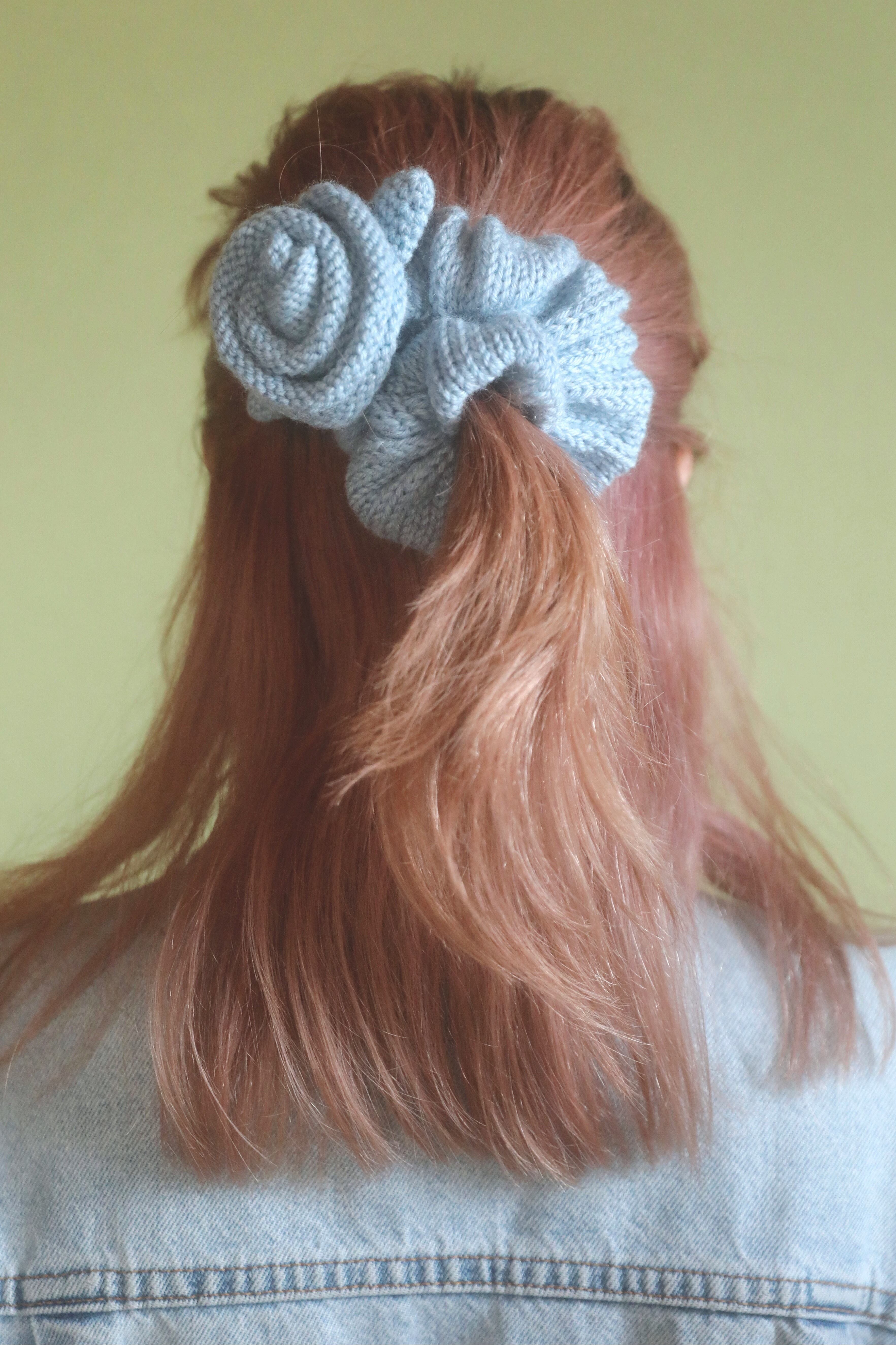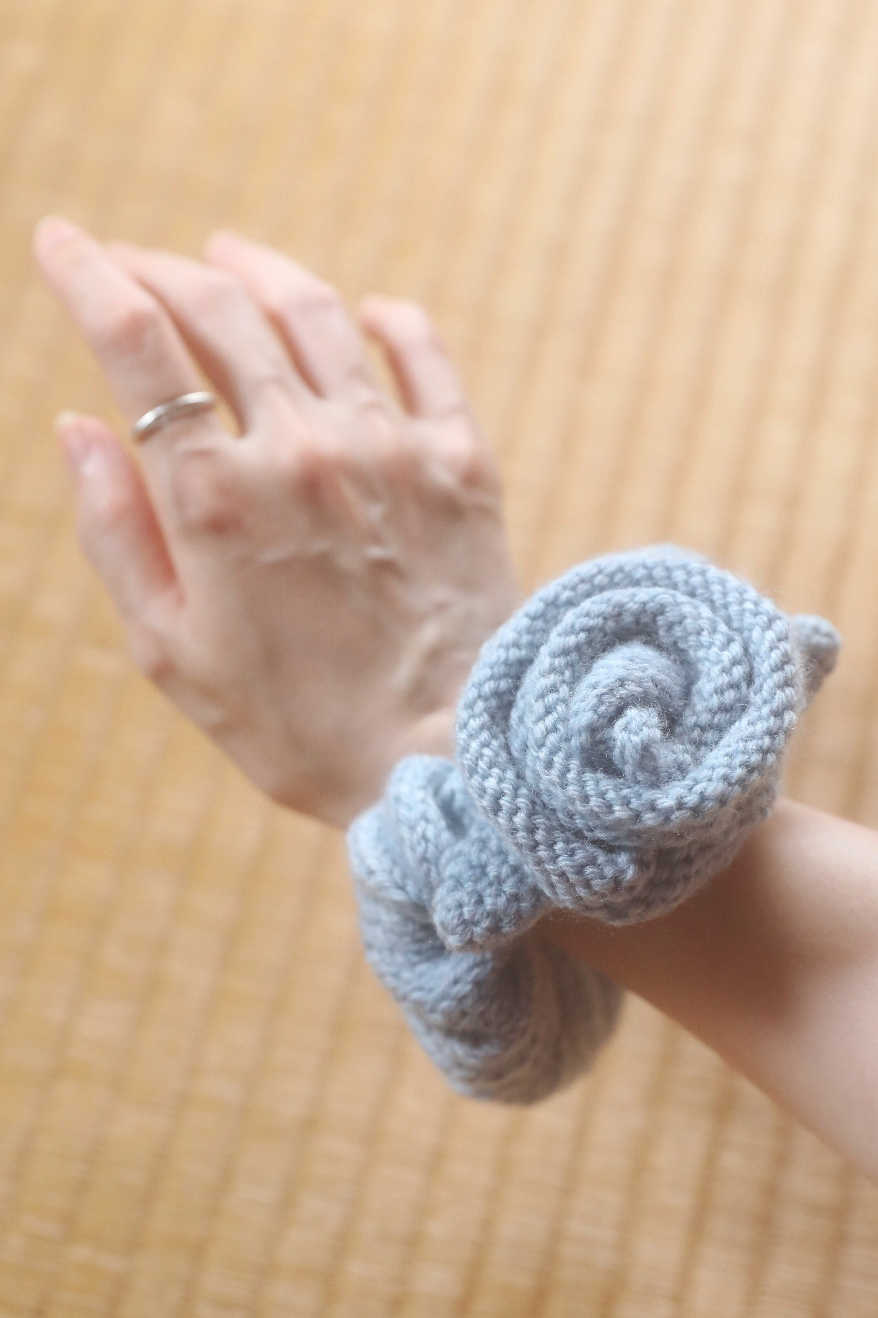 ローズモチーフが可愛い、ボリュームのあるニットシュシュです。