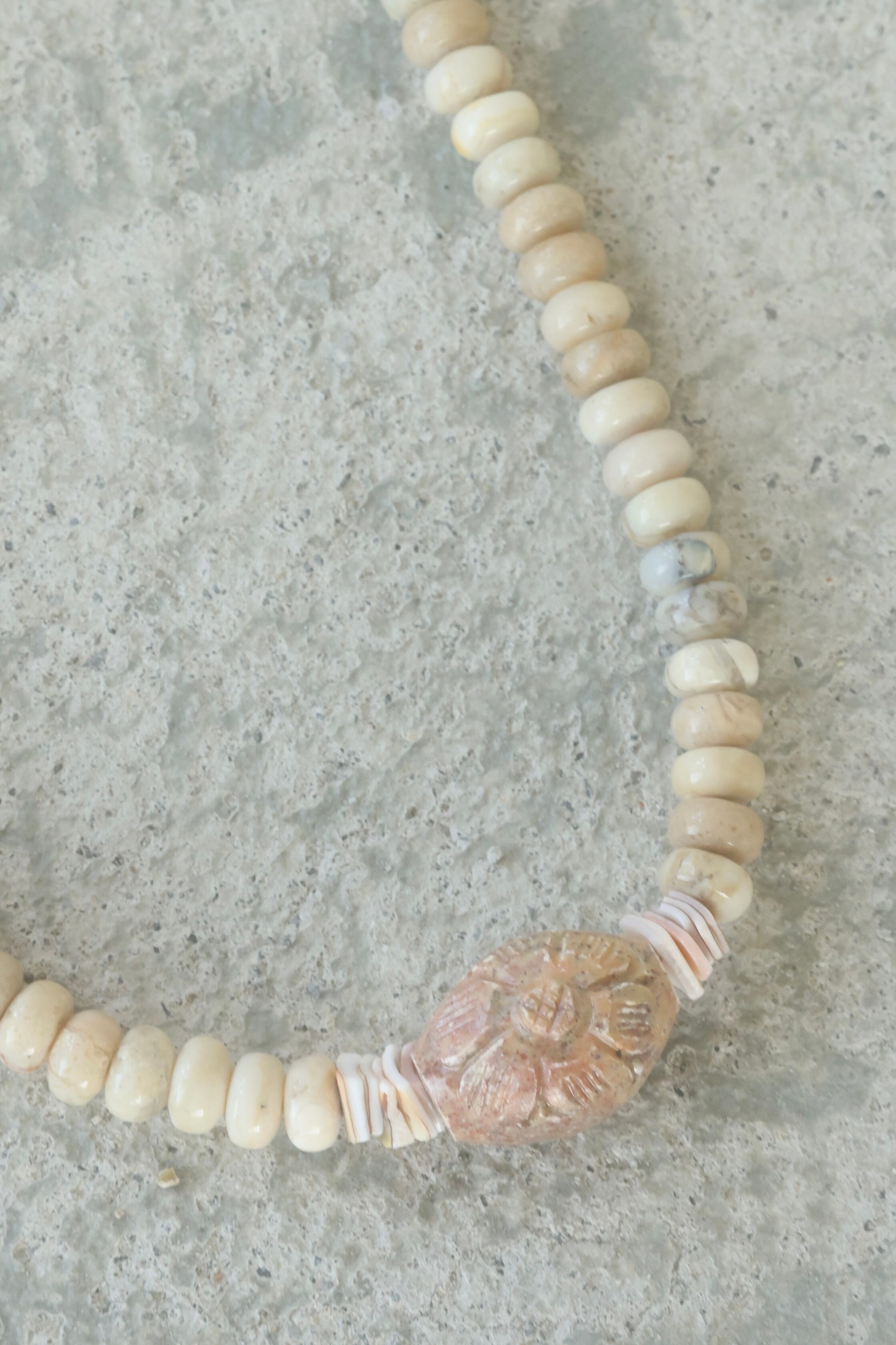 オパール、ストーンビーズ、シェル、カレン族シルバーのフックを使用したネックレスです。