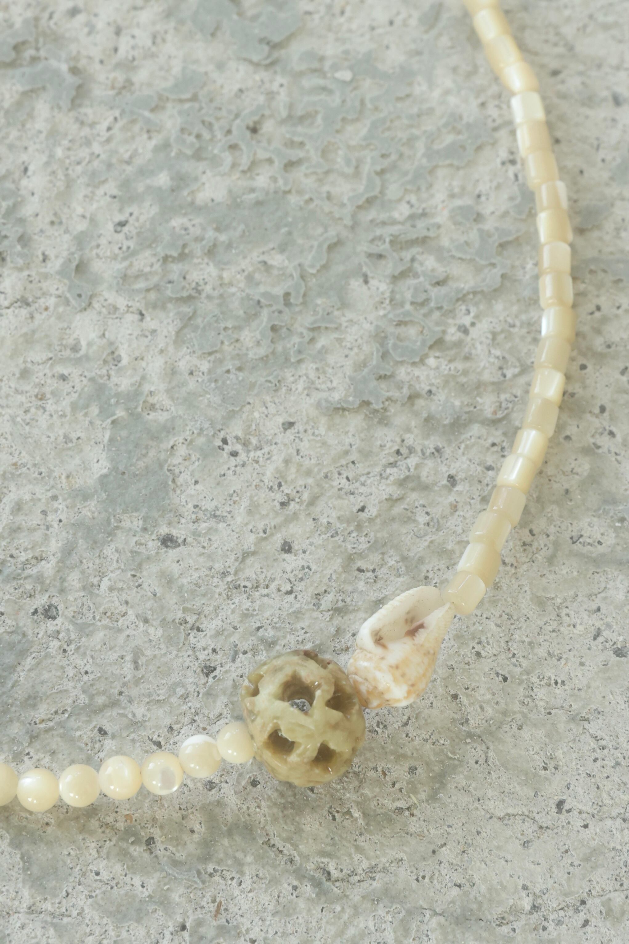 ストーンビーズ、シェル、パール、カレン族シルバーチャーム、Silver925フックを使用したネックレスです。