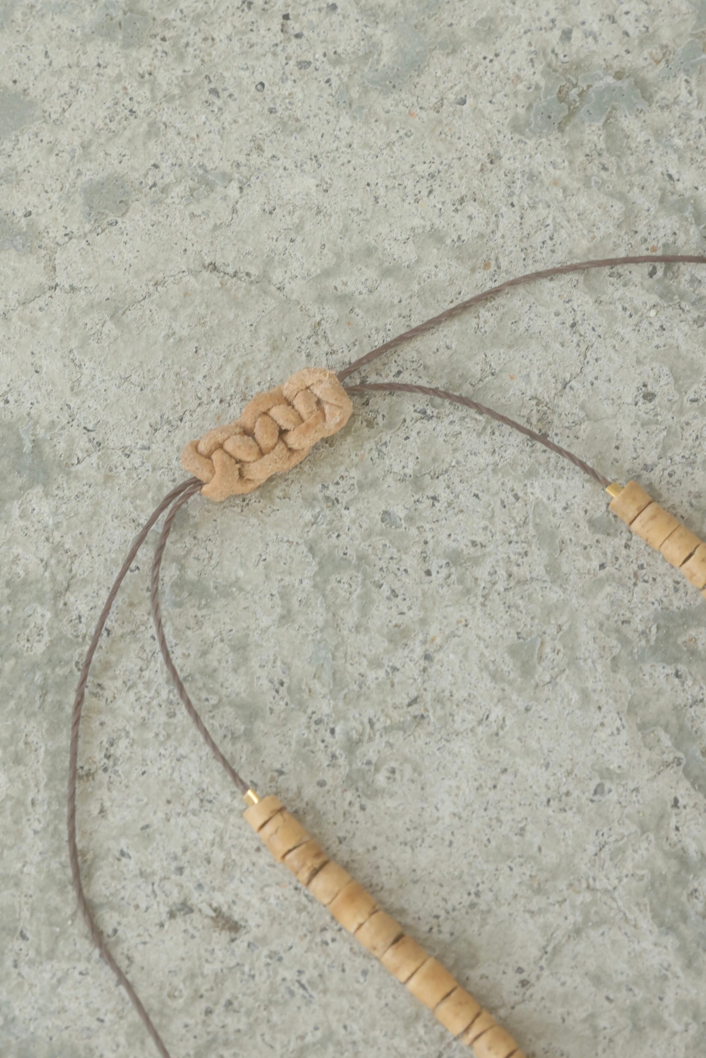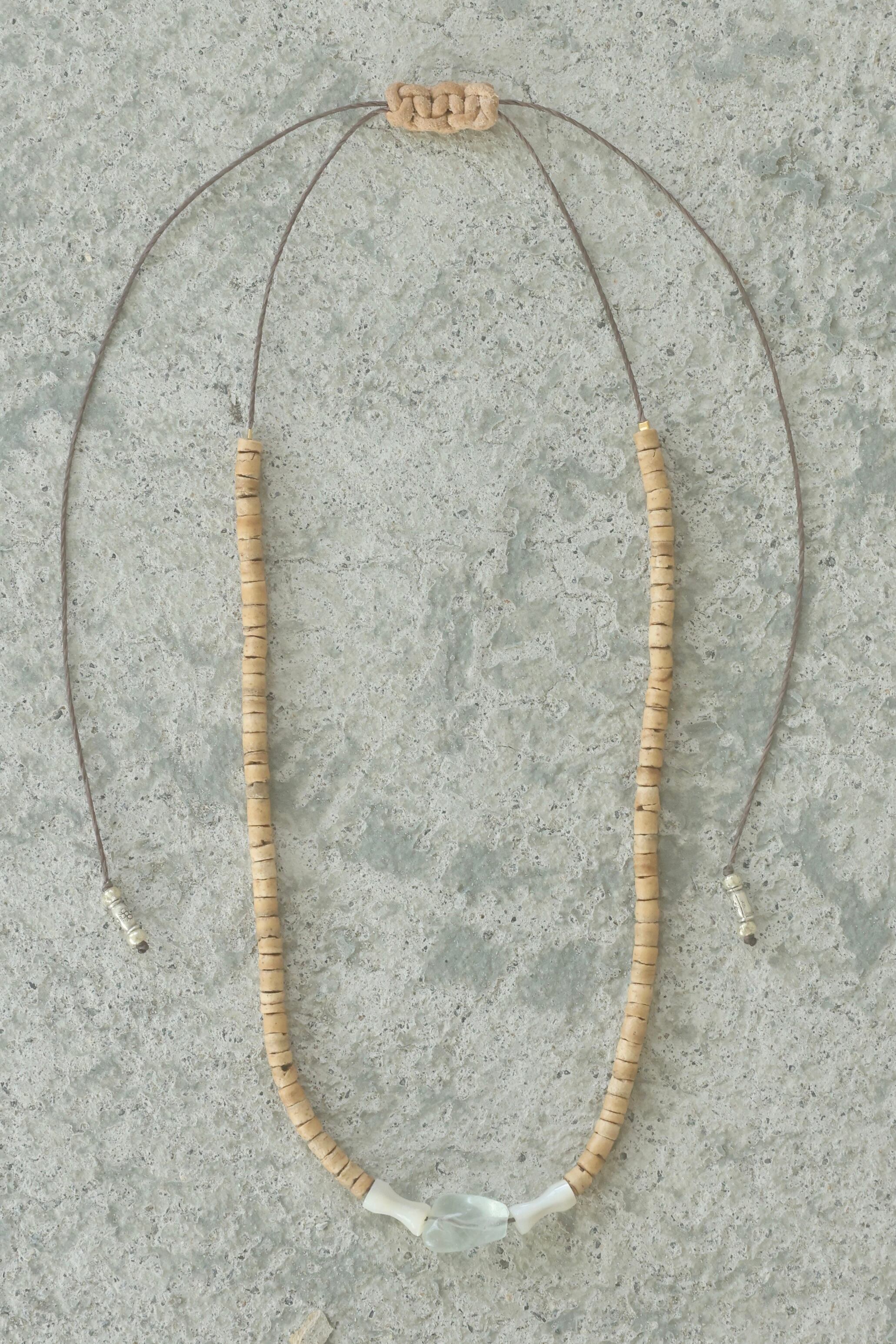 ココナッツ、シェル、フローライト、カレンシルバーを使用したネックレスです。