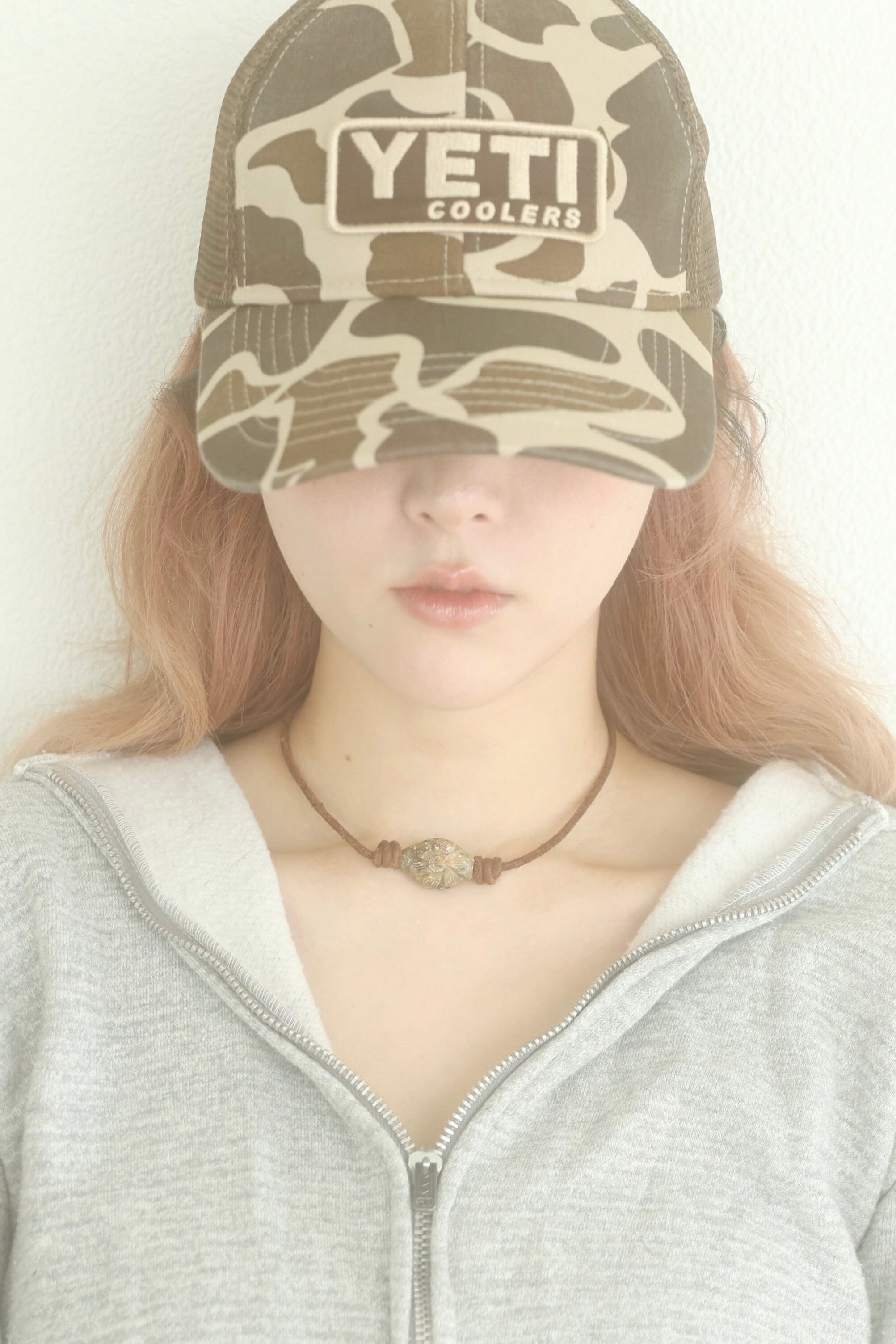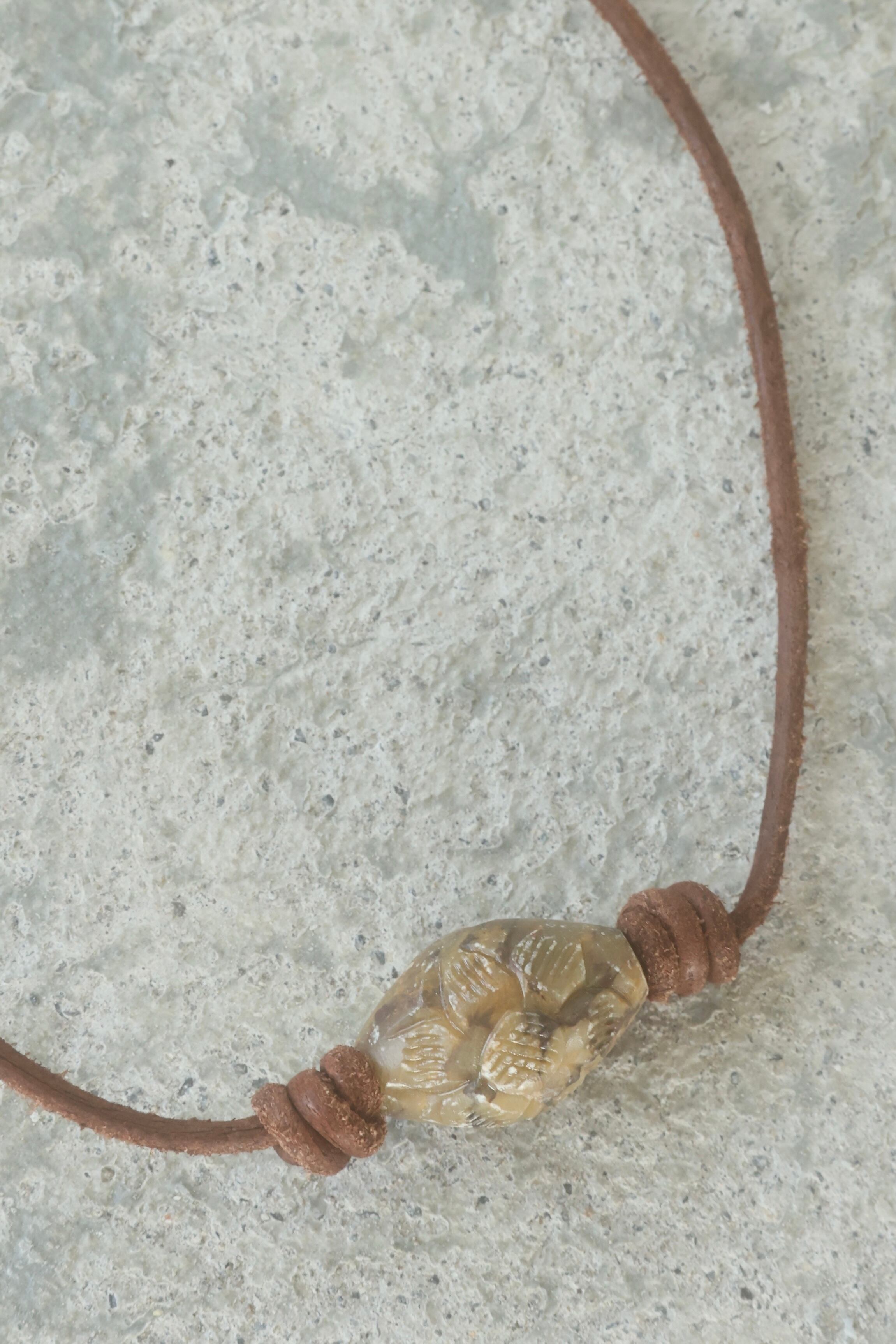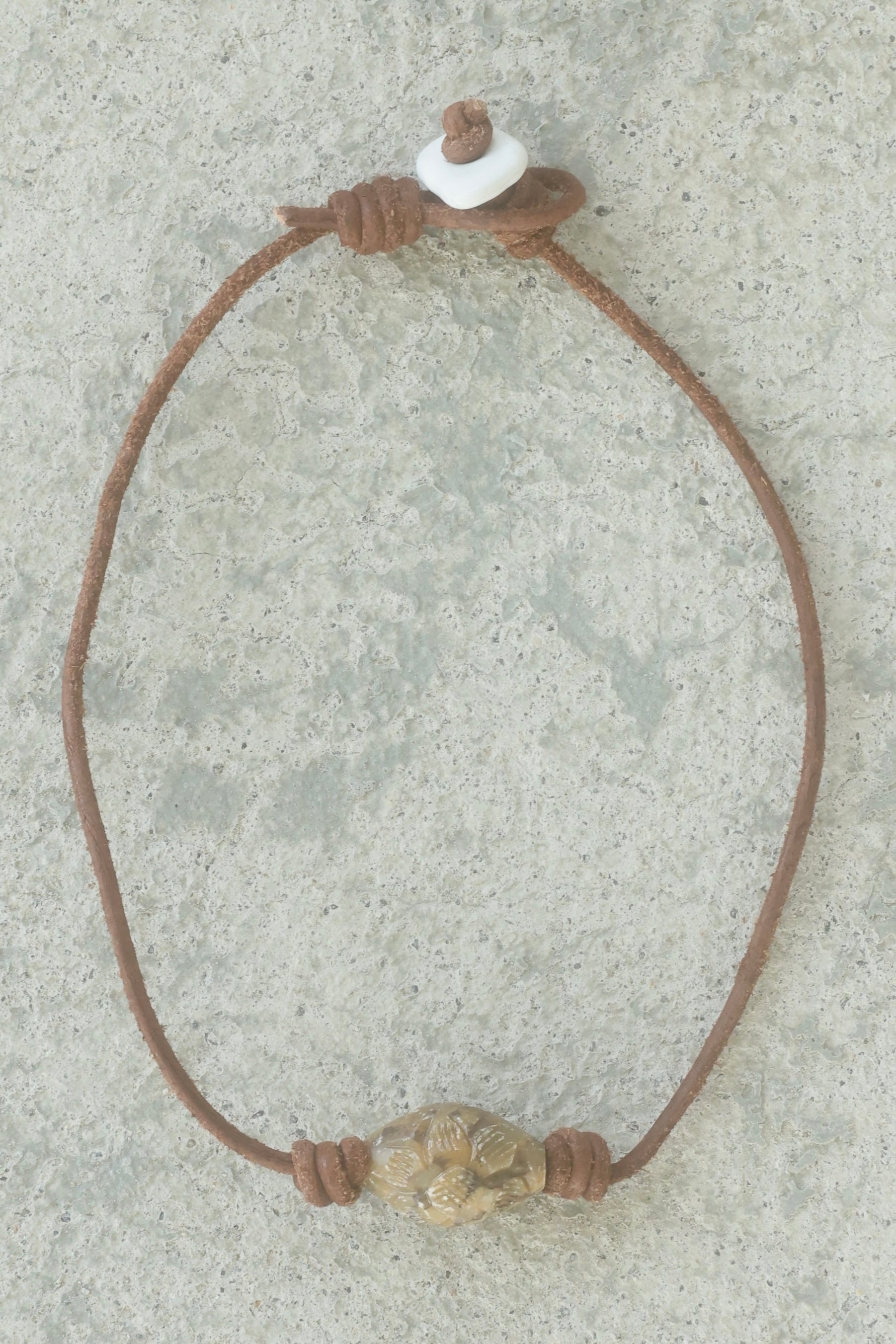 ストーンビーズ、カズリビーズ、レザー紐を使用したネックレスです。