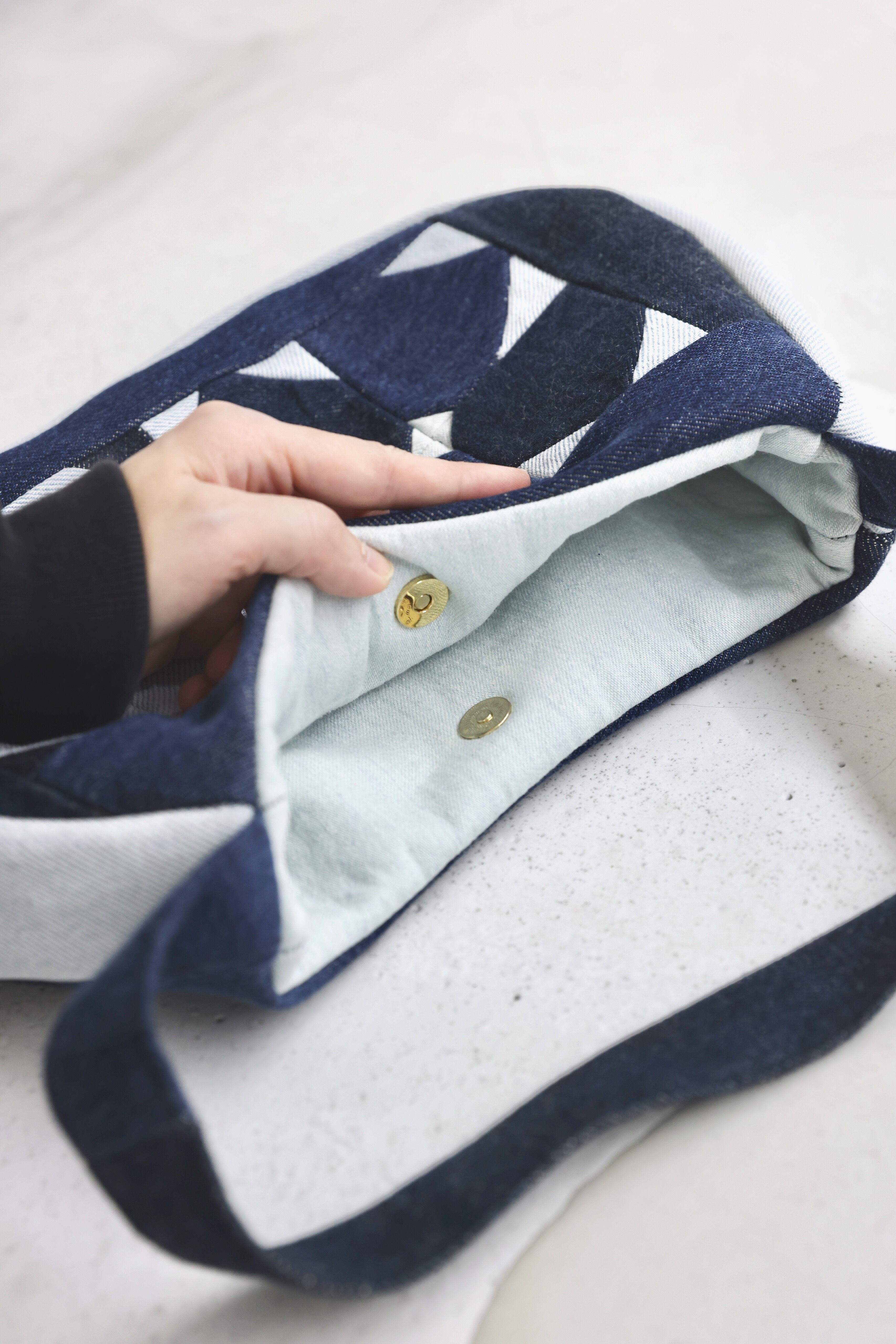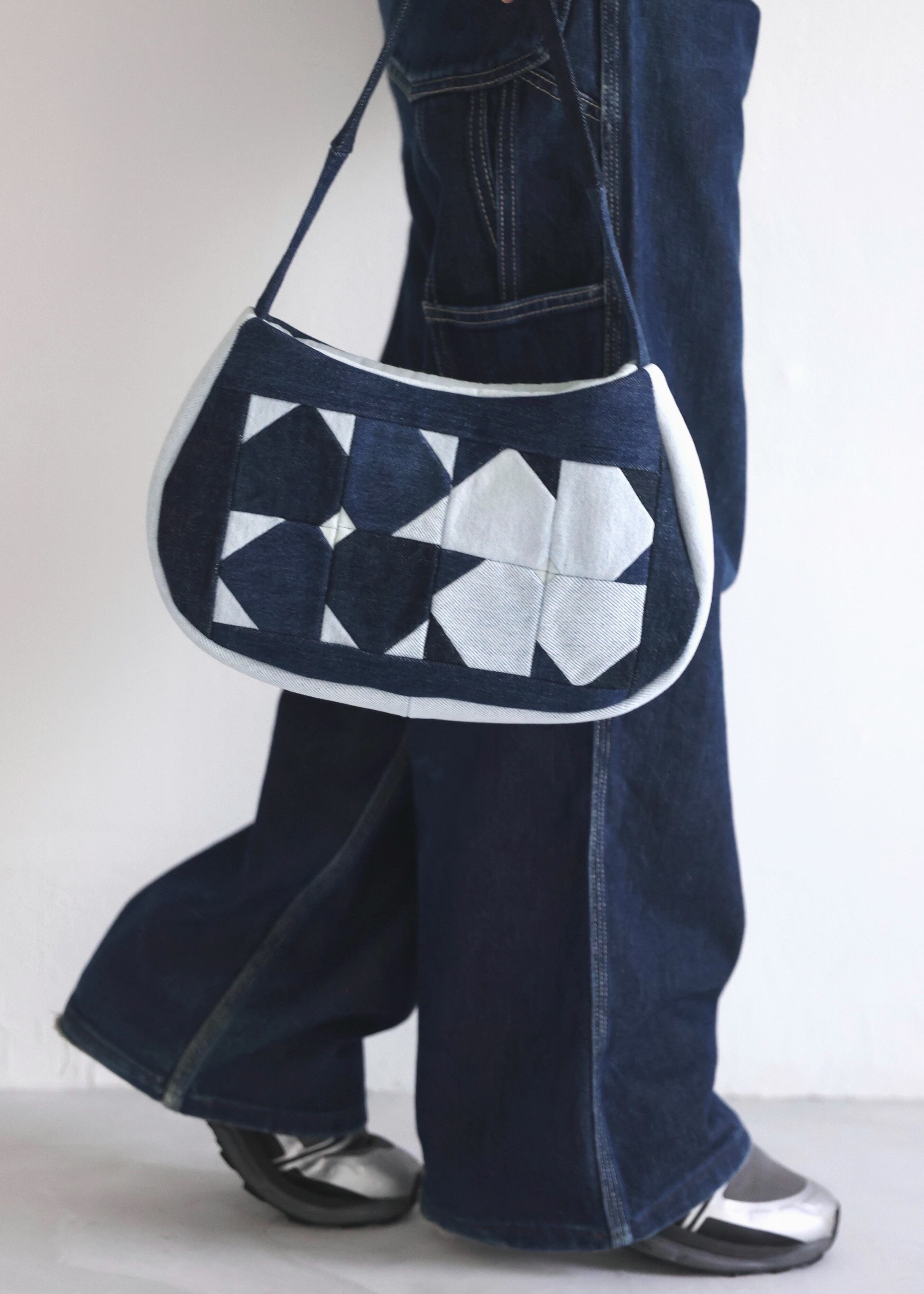 usedデニムパンツをバッグにリメイクしました。デニムのパッチワークが可愛い1点です。