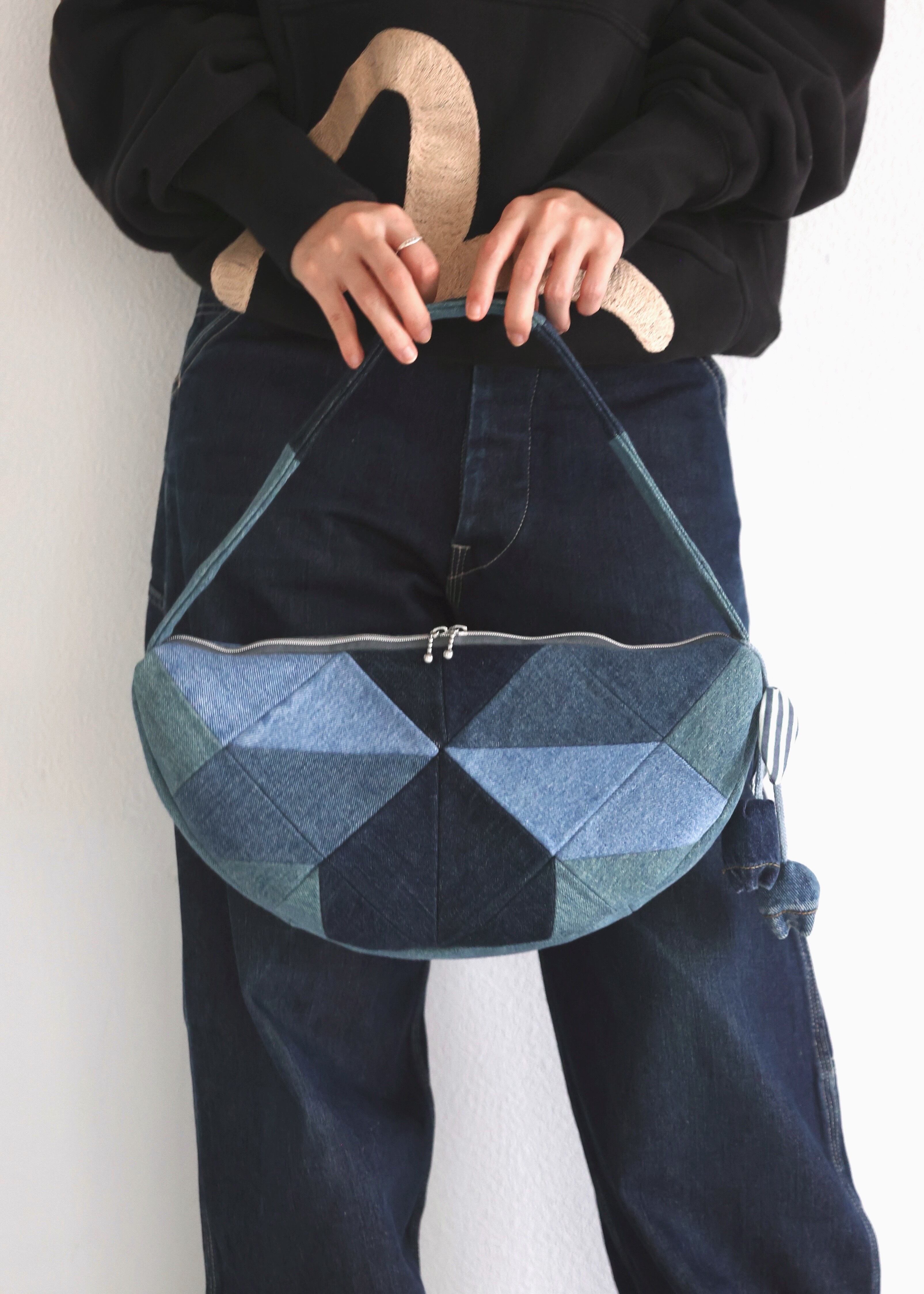 usedデニムパンツをバッグにリメイクしました。パッチワークが可愛い1点。